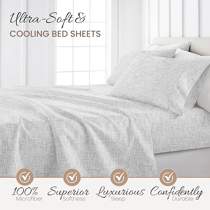 Linen Market 4 Piece Full Bedding Sheet Set (White Chambray) - Sleep Better Than Ever with These Ultra-Soft & Cooling Bed Sheets for Your Full Size Bed - Deep Pocket Fits 16" Mattress