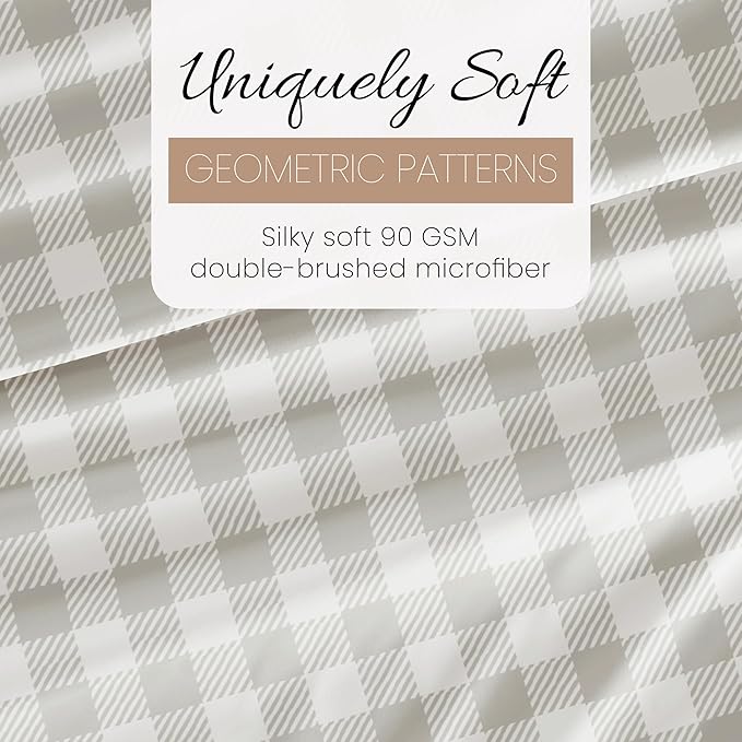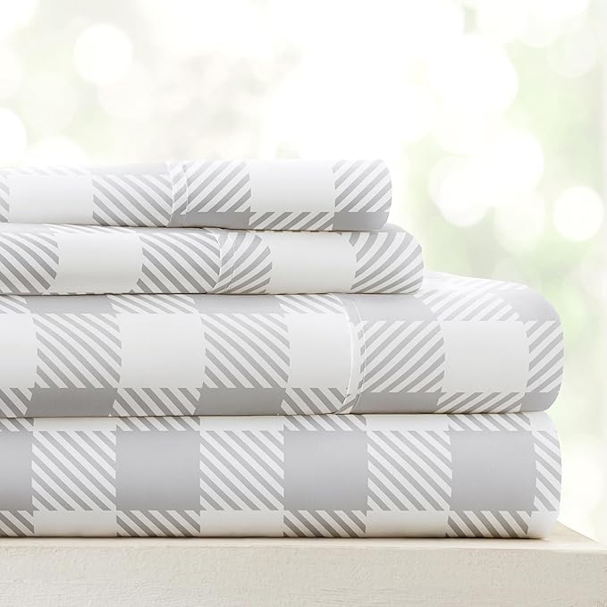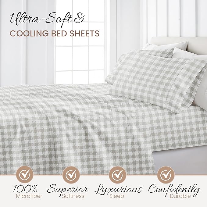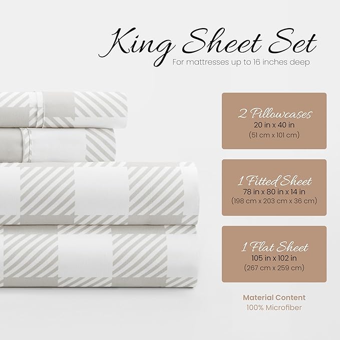 Linen Market 4 Piece King Bedding Sheet Set (Light Gray Plaid) - Sleep Better Than Ever with These Ultra-Soft & Cooling Bed Sheets for Your King Size Bed - Deep Pocket Fits 16" Mattress