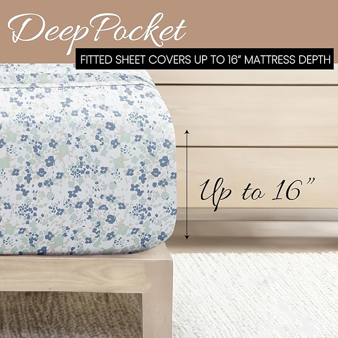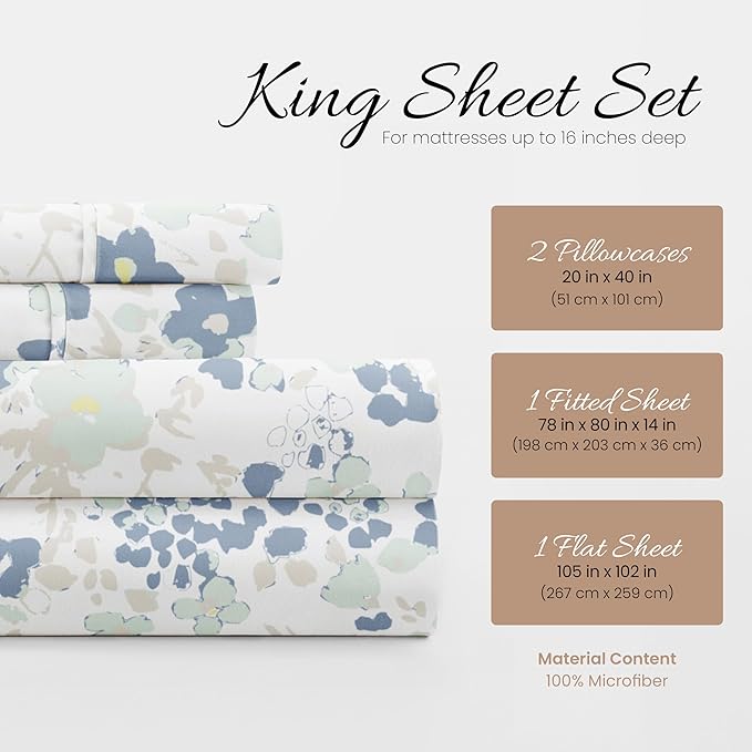 Linen Market 4 Piece King Bedding Sheet Set (Light Blue Violets) - Sleep Better Than Ever with These Ultra-Soft & Cooling Bed Sheets for Your King Size Bed - Deep Pocket Fits 16" Mattress