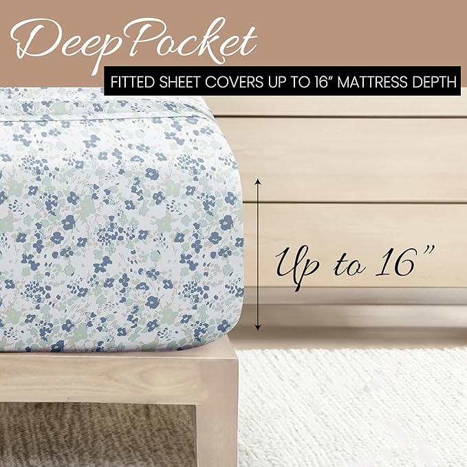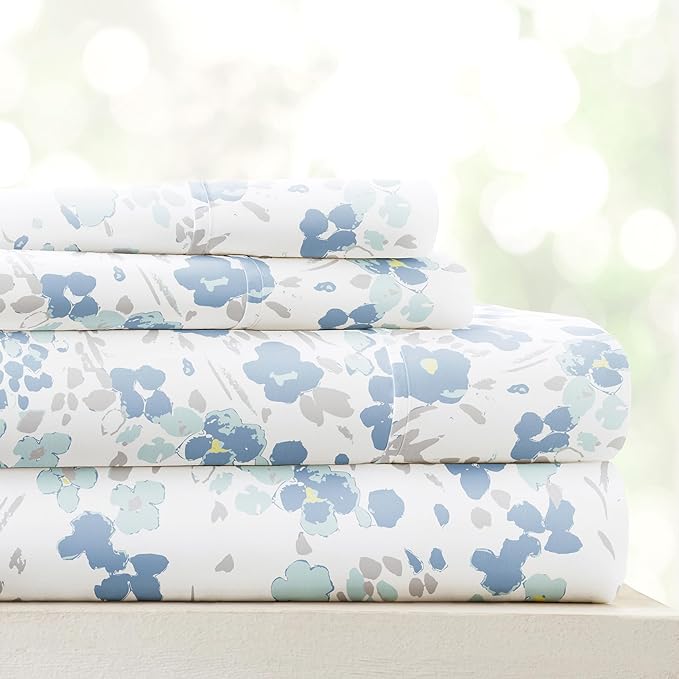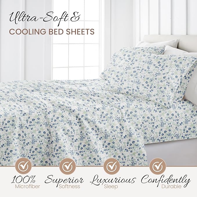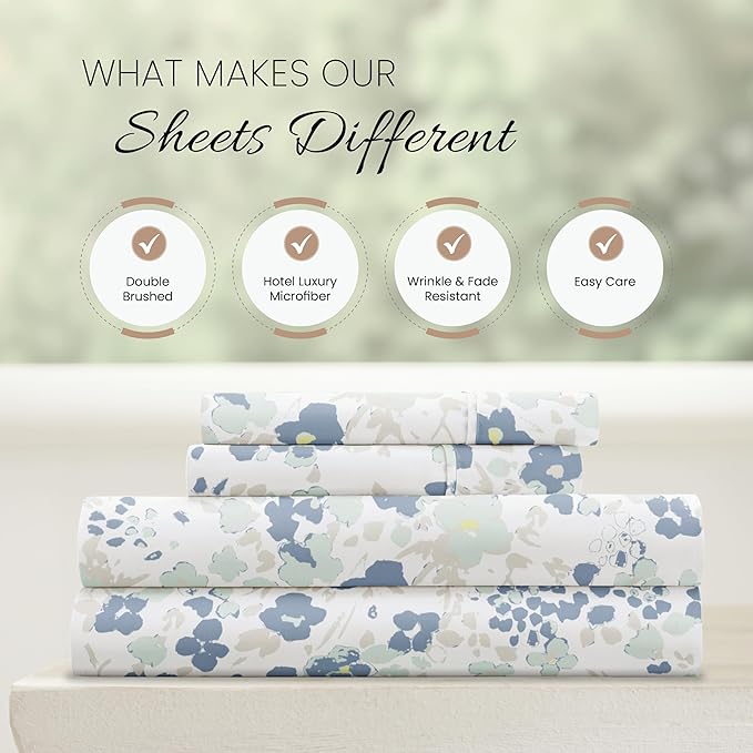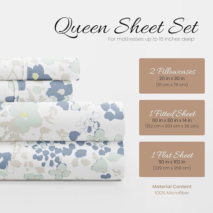 Linen Market 4 Piece Queen Bedding Sheet Set (Light Blue Violets) - Sleep Better Than Ever with These Ultra-Soft & Cooling Bed Sheets for Your Queen Size Bed - Deep Pocket Fits 16" Mattress