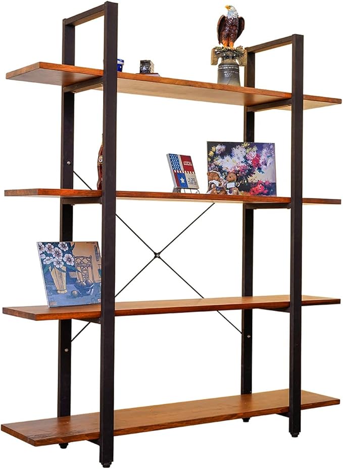 CONSDAN Industrial Bookshelf, USA Grown Hardwood, Real Wood Bookshelves, Modern Open Rustic Bookcase, Storage Shelf, Display Shelf, Poplar Solid Wood-4 Tier Shelf