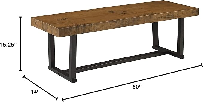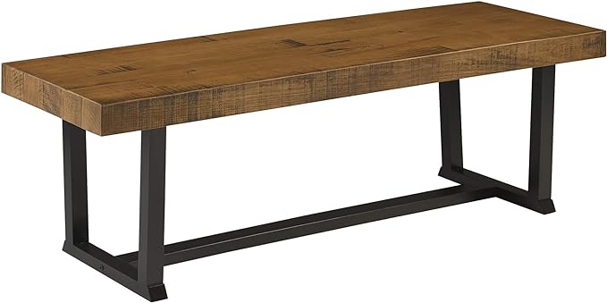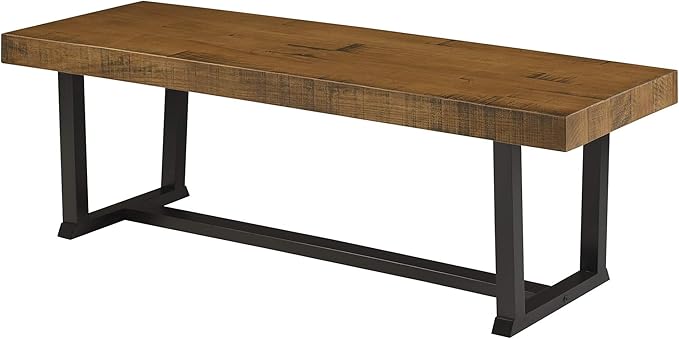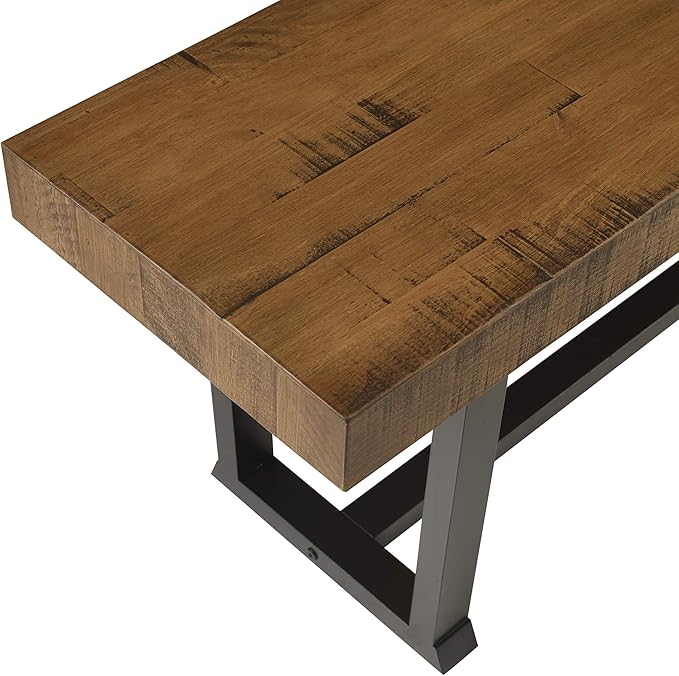 Walker Edison Protrero Urban Industrial Solid Wood and Metal Dining Bench, 60 Inch, Rustic Oak