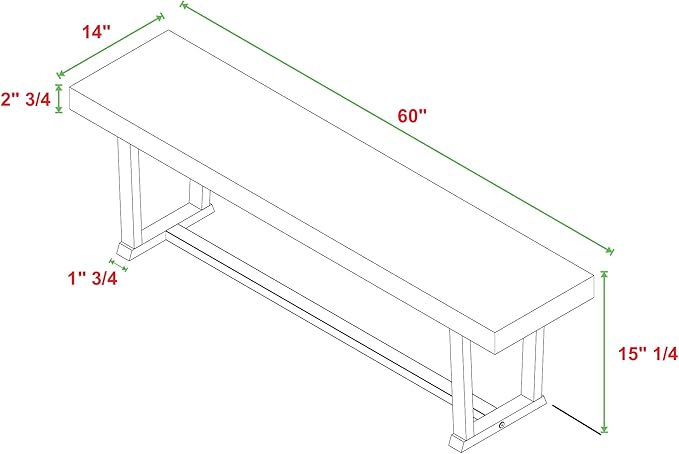 About This Dimensions: 18.25” H x 14” D x 60” L Bench supports up to 400 Ibs. Made with responsibly-sourced...