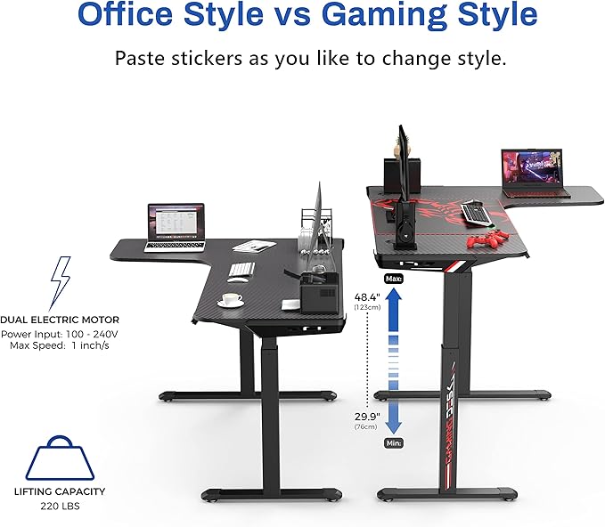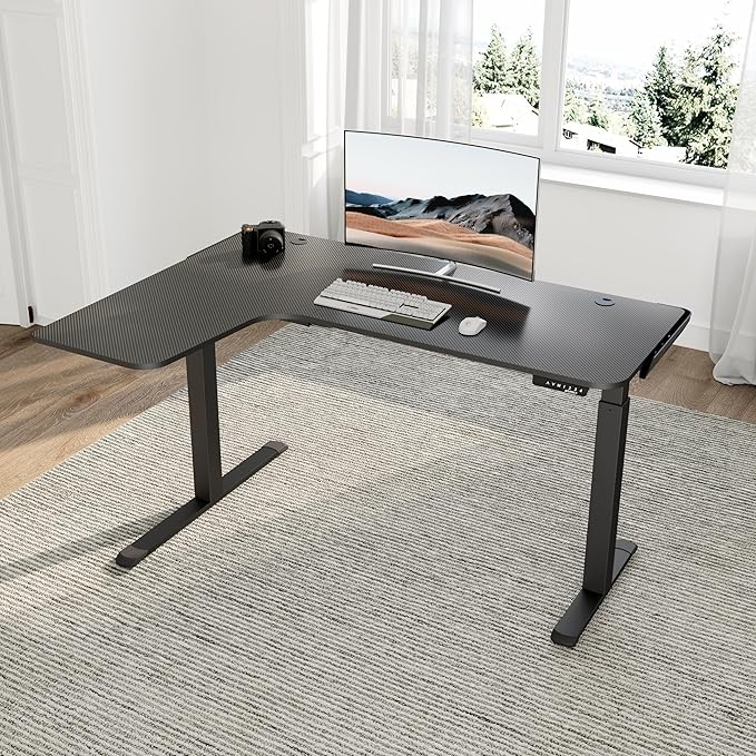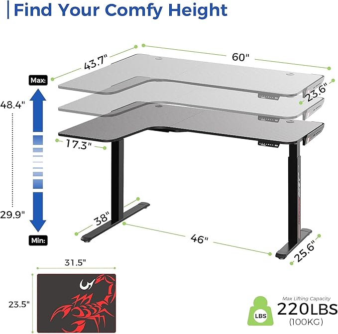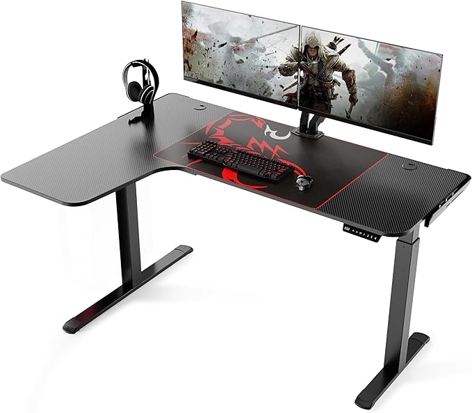 EUREKA ERGONOMIC Standing Desk L Shaped, 60 Inch Gaming Desk Electric Height Adjustable Dual Motor Rising Sit Stand Up Corner Desk for Computer Home Office, Smart Memory Preset Mousepad, Large, Left