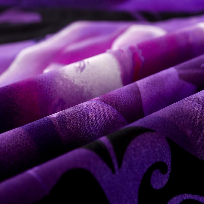 About This 【Purple Comforter Full】WONGS BEDDING 3D purple rose comforter set uses a black background with a purple rose pattern...