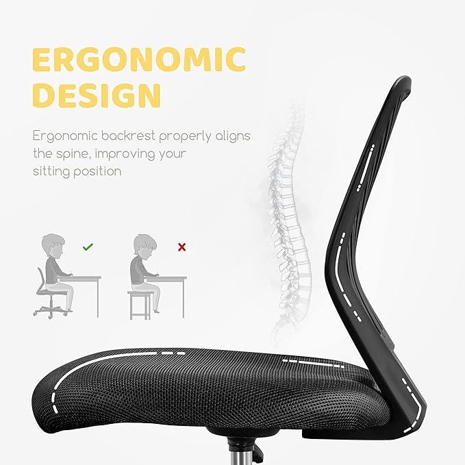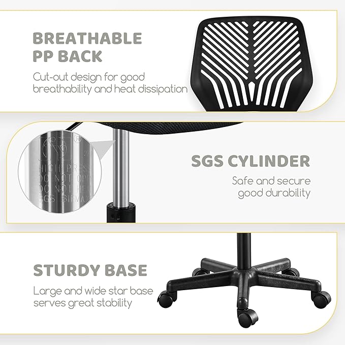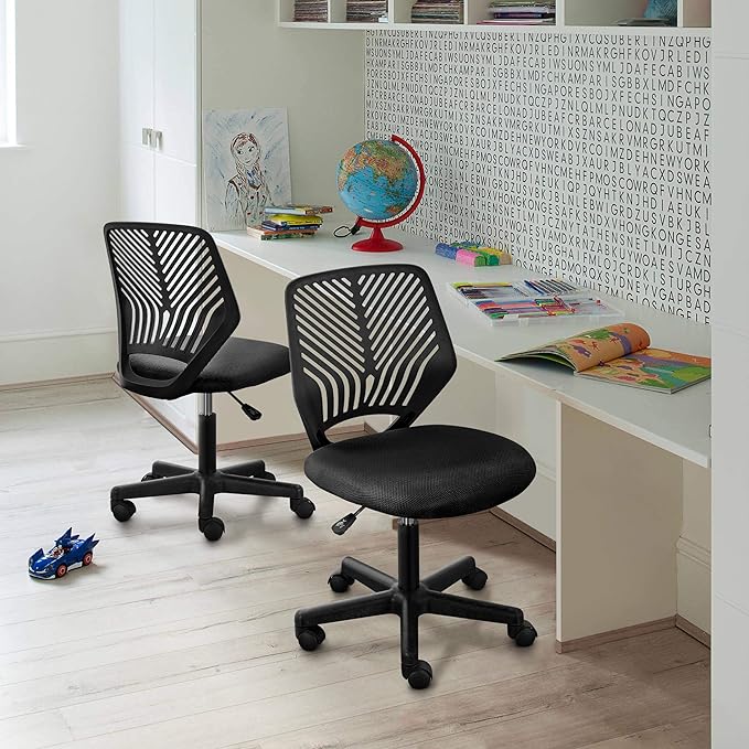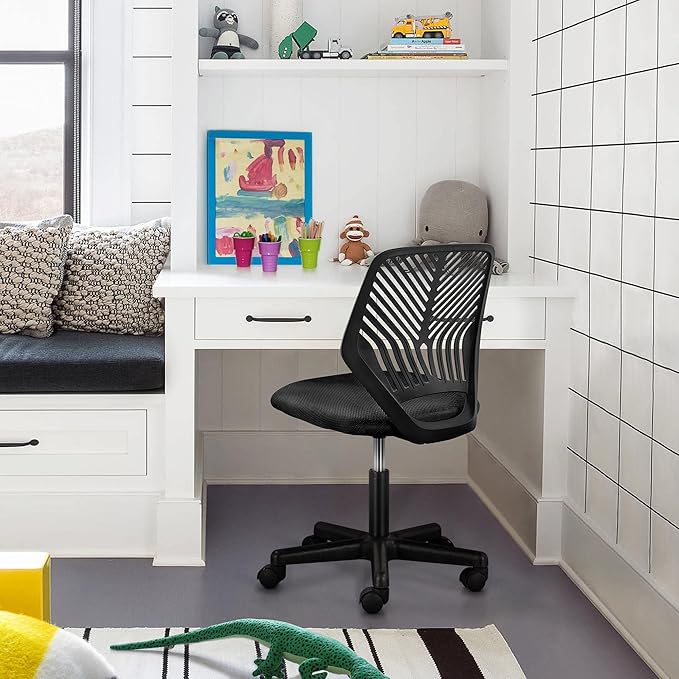 Yaheetech Students Cute Desk Chair Low-Back Armless Study Chair w/Lumbar Support Adjustable Swivel Chair in Home Bedroom School, Black