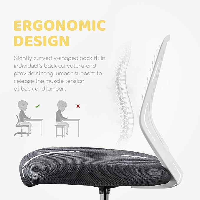 Yaheetech Students Cute Desk Chair Low-Back Armless Study Chair w/Lumbar Support Adjustable Swivel Chair in Home Bedroom School, Dark Gray