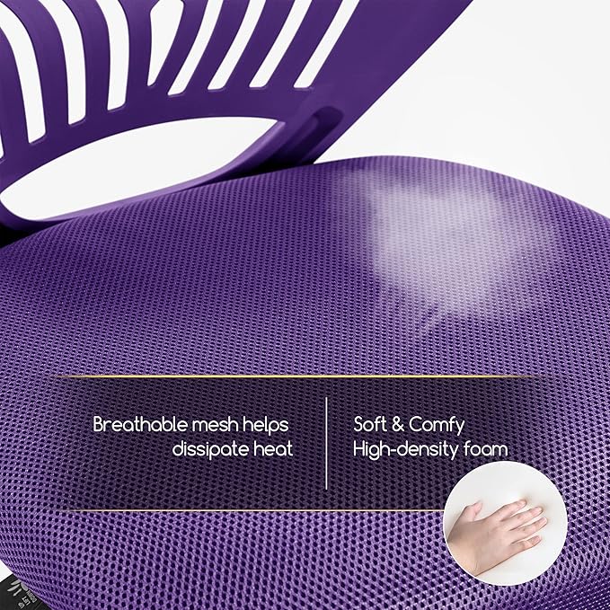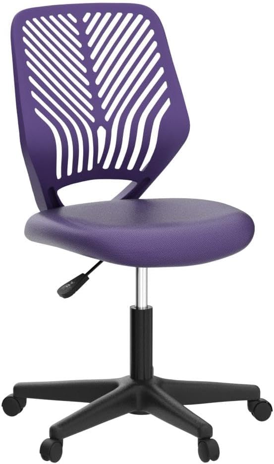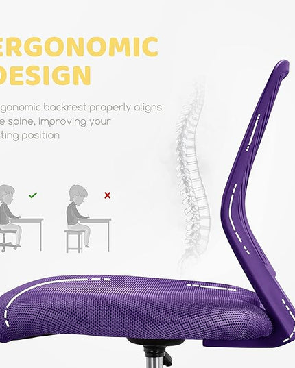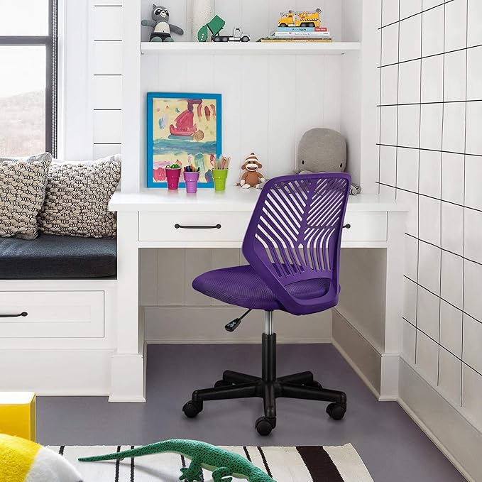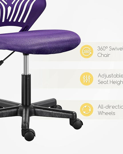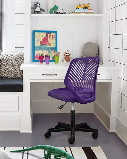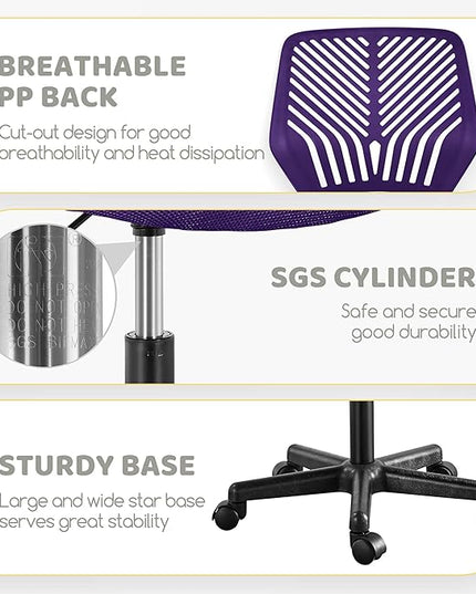 Yaheetech Students Cute Desk Chair Low-Back Armless Study Chair w/Lumbar Support Adjustable Swivel Chair in Home Bedroom School, Purple