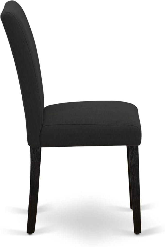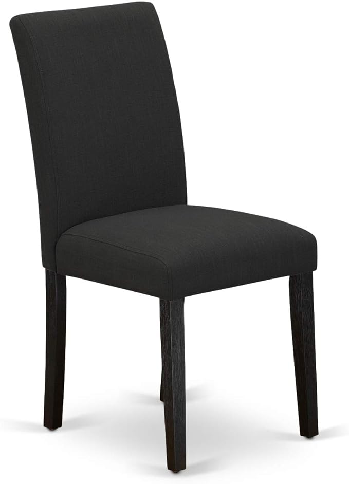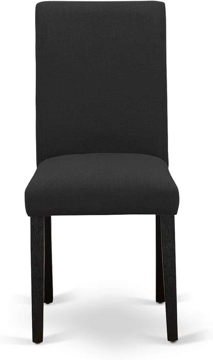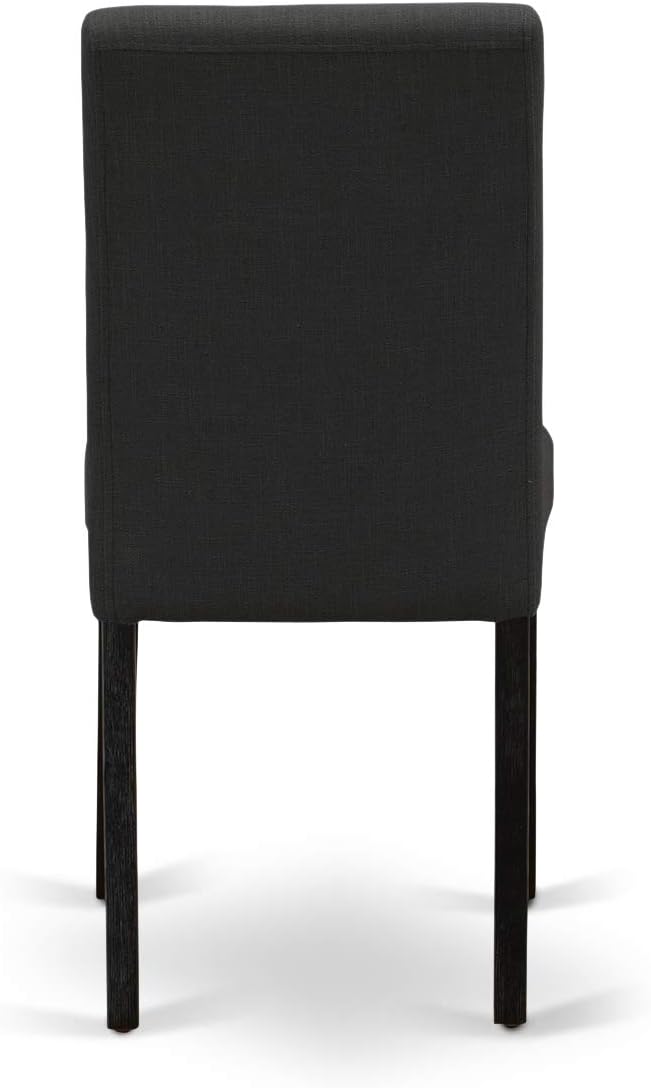 East West Furniture AMAB3-ABK-24 Antique 3 Piece Modern Dining Set Contains a Round Kitchen Table with Pedestal and 2 Black Color Linen Fabric Upholstered Chairs, 36x36 Inch
