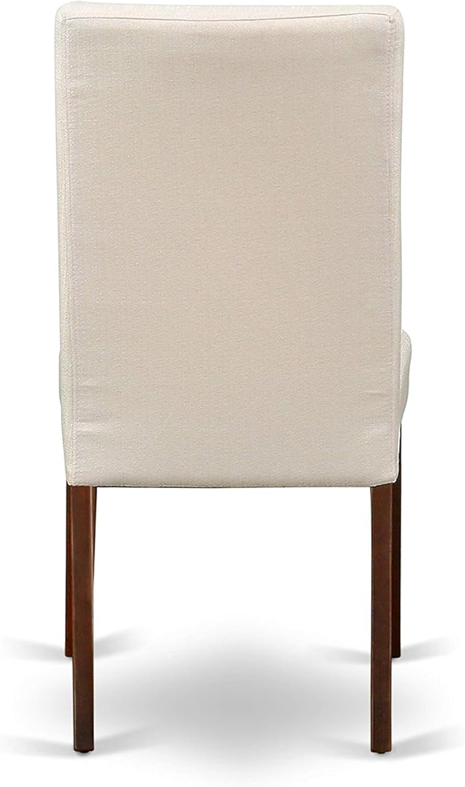 East West Furniture HBDR3-MAH-01 Hartland 3 Piece Room Furniture Set Contains a Round Dining Table with Pedestal and 2 Cream Linen Fabric Upholstered Parson Chairs, 42x42 Inch