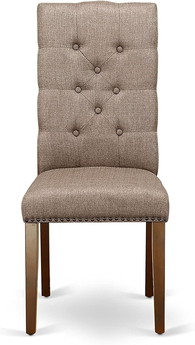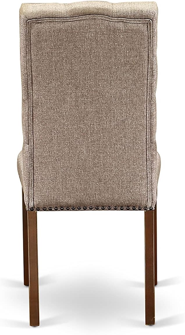 East West Furniture HBEL3-MAH-16 Hartland 3 Piece Room Furniture Set Contains a Round Dining Table with Pedestal and 2 Dark Khaki Linen Fabric Upholstered Chairs, 42x42 Inch
