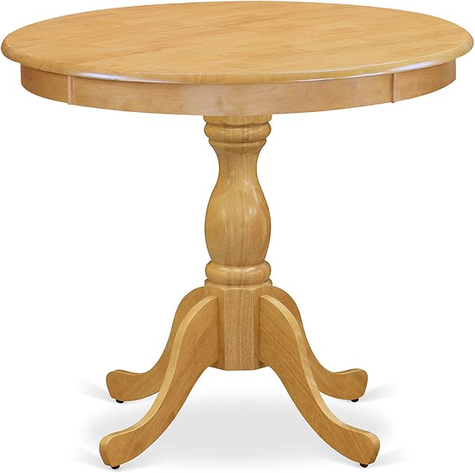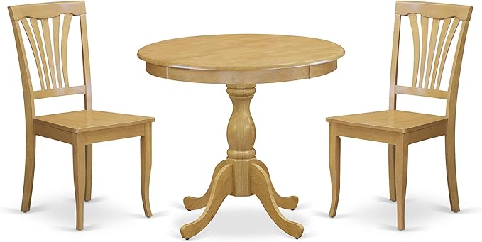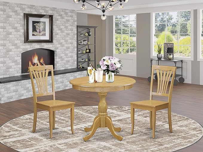 East West Furniture Antique 3 Piece Set Contains a Round Kitchen Table with Pedestal and 2 Dining Room Chairs, 36x36 Inch, AMAV3-OAK-W