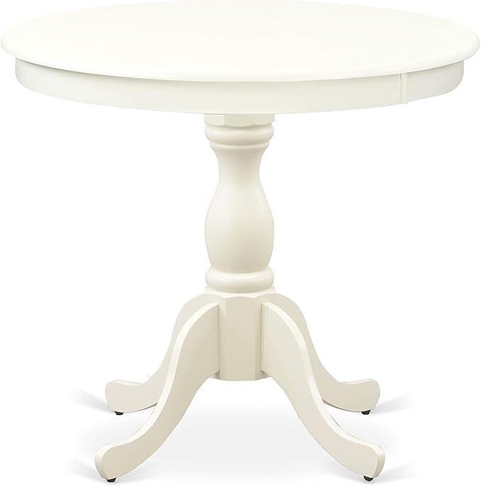 East West Furniture Antique 3 Piece Dining Set for Small Spaces Contains a Round Kitchen Table with Pedestal and 2 Gray Fabric Upholstered Chairs, 36x36 Inch, Linen White