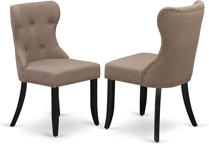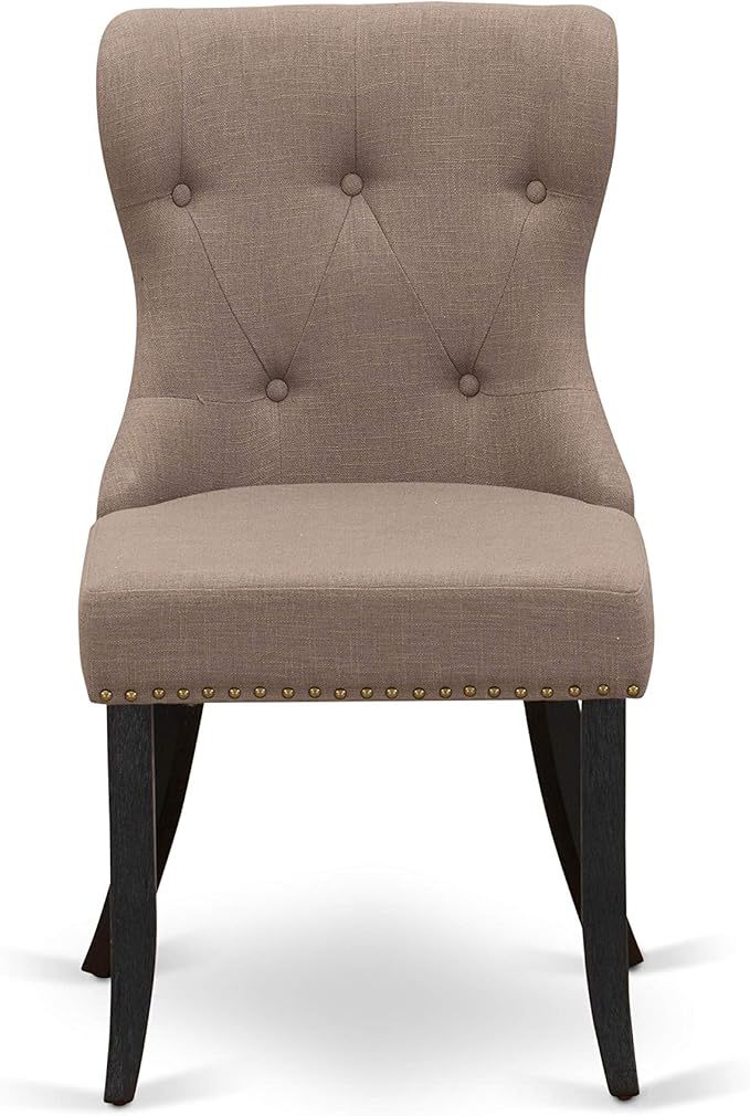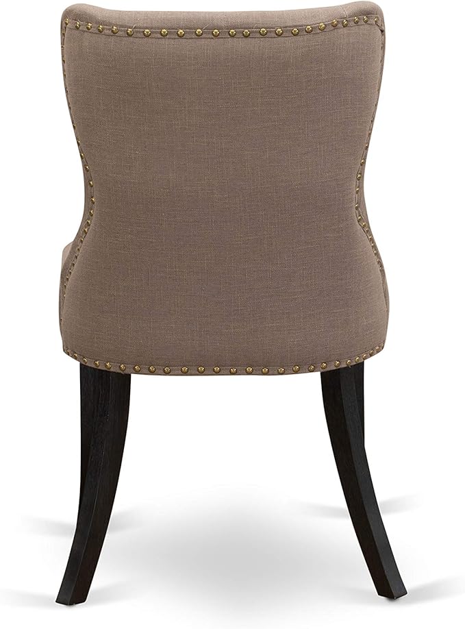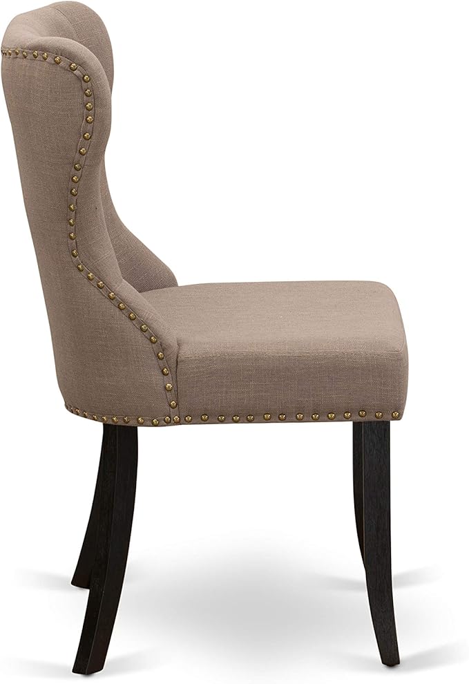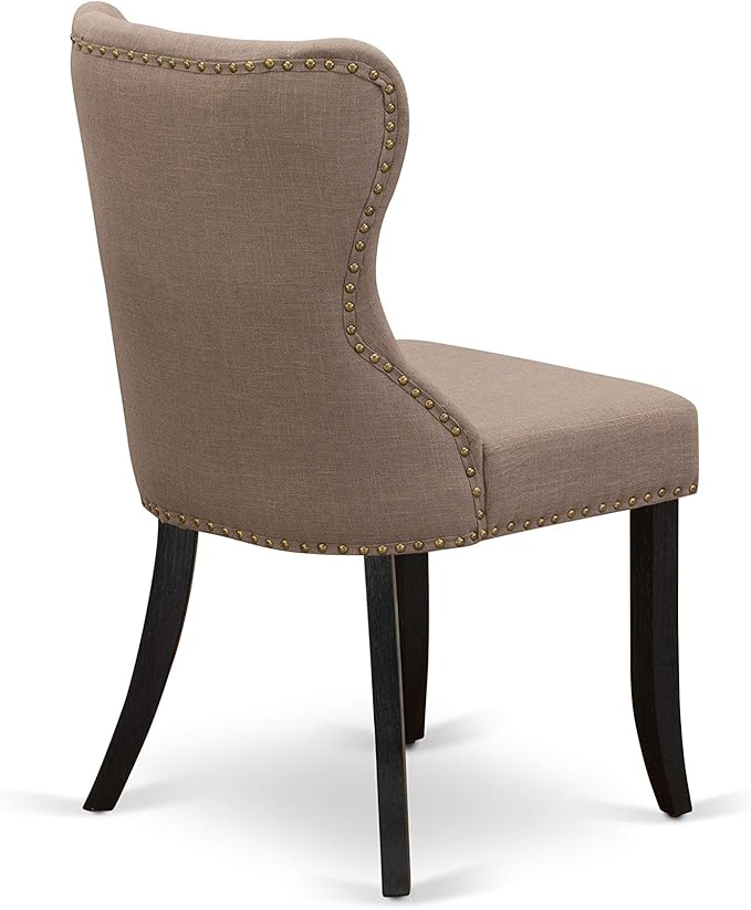 East West Furniture DMSI5-ABK-48 5 Piece Kitchen Table Set for 4 Includes a Round Dining Table with Dropleaf and 4 Coffee Linen Fabric Parson Dining Room Chairs, 42x42 Inch, Wirebrushed Black