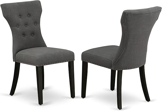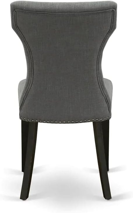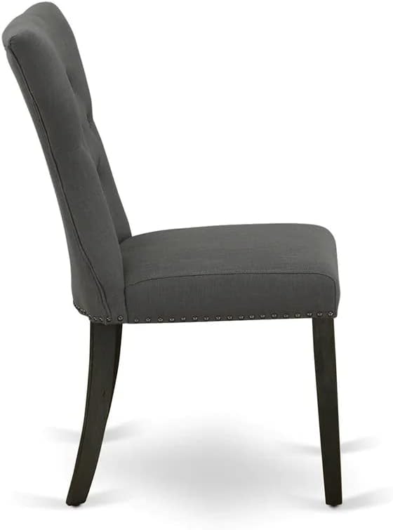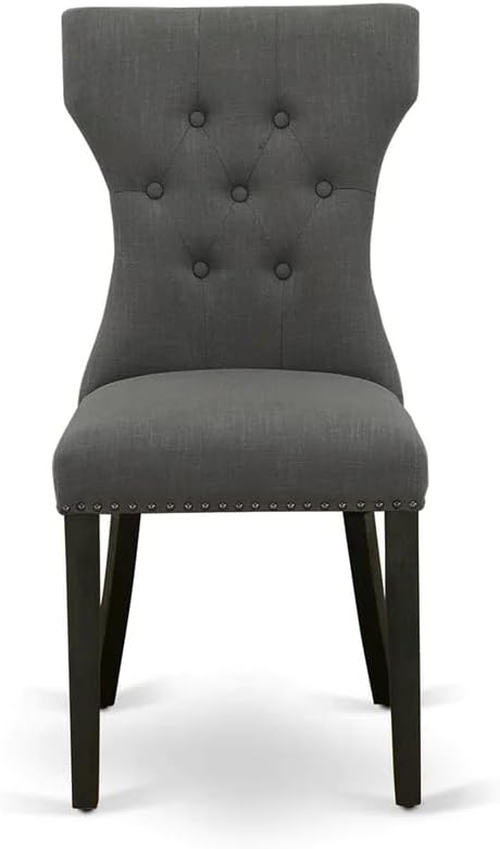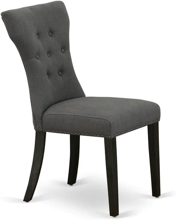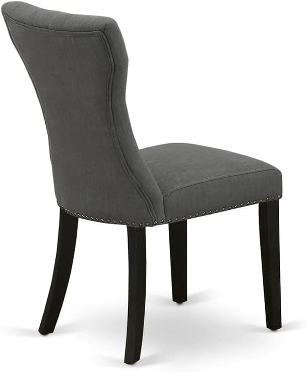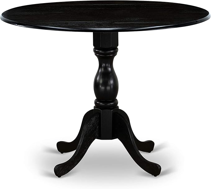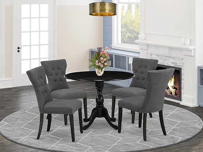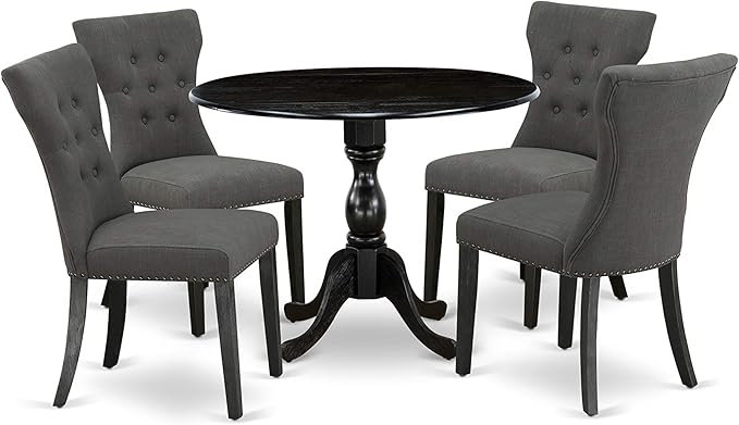 East West Furniture DMGA5-ABK-50 5 Piece Dining Room Table Set Includes a Round Dining Table with Dropleaf and 4 Dark Gotham Linen Fabric Upholstered Parson Chairs, 42x42 Inch, Wirebrushed Black