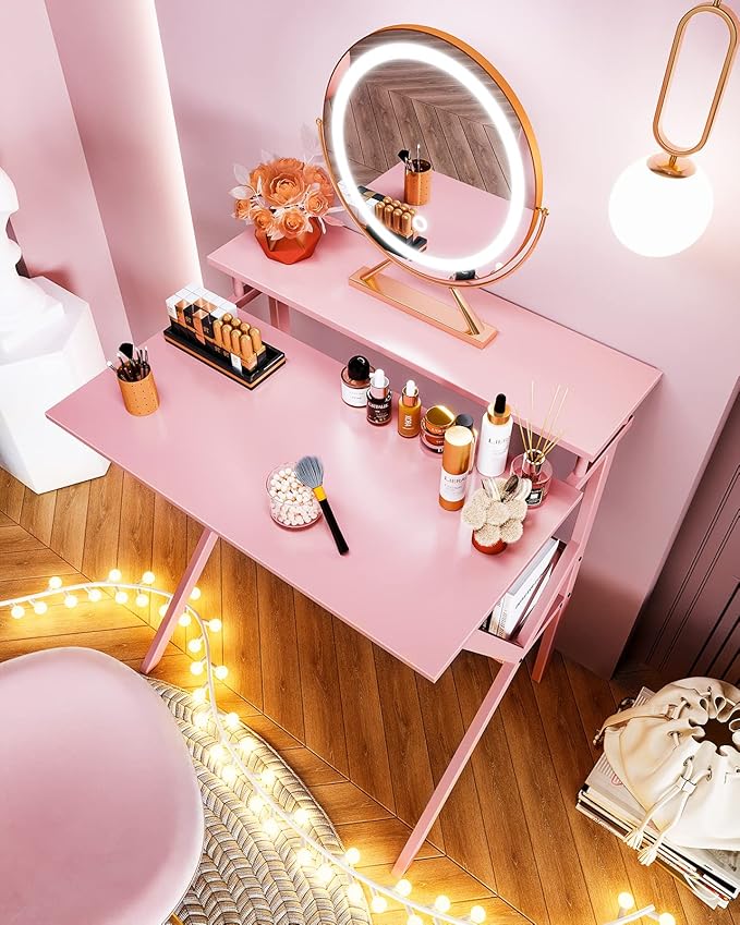 ODK Small Desk, 27.5 Inch Small Computer Desk for Small Spaces, Compact Desk with Storage, Tiny Desk Study Desk with Monitor Stand for Home Office, Pink