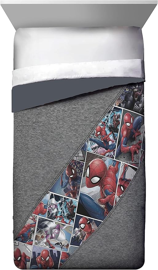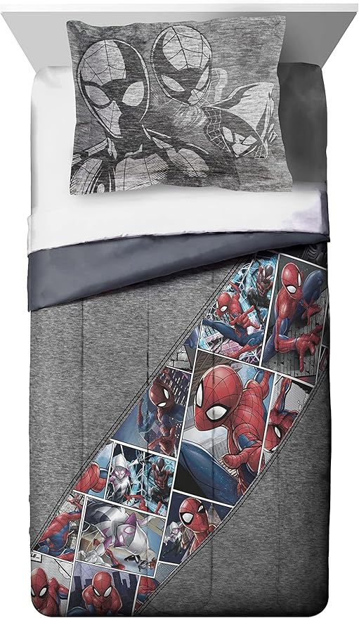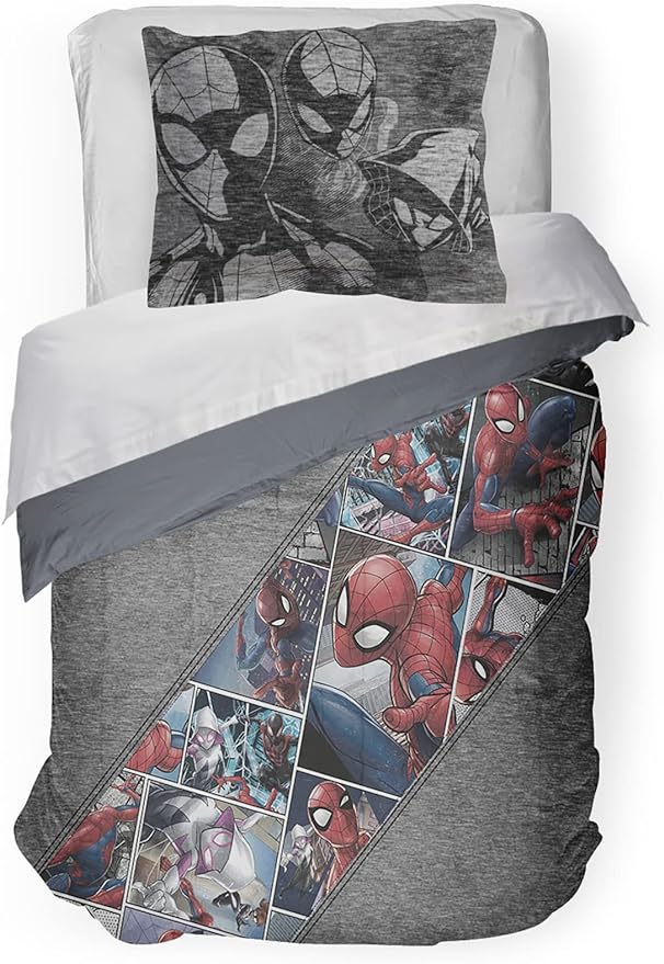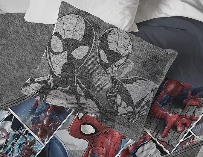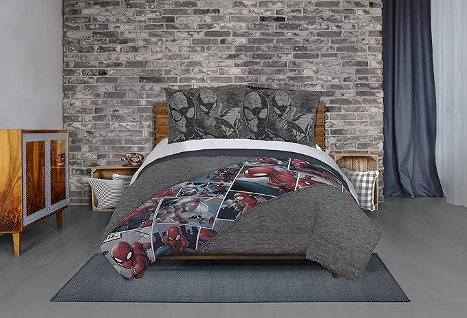 Marvel Spiderman Grunge Twin Comforter & Sham Set - Super Soft Kids Bedding - Fade Resistant Microfiber (Official Marvel Product)