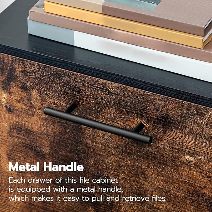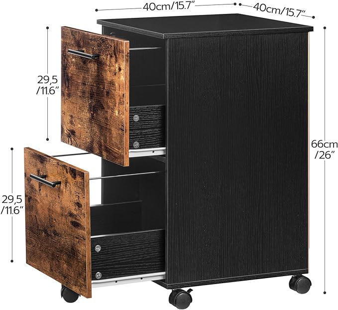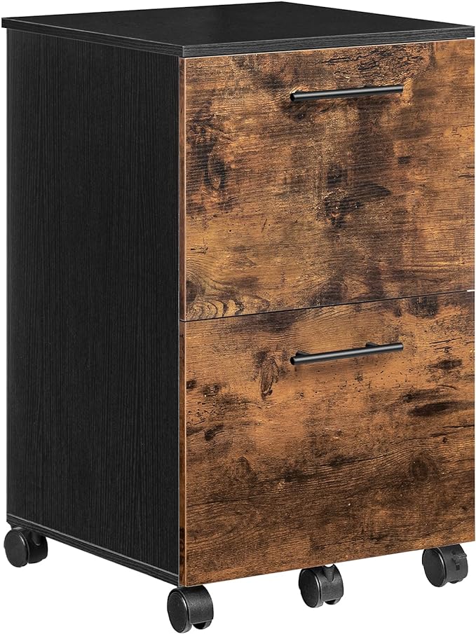 HOOBRO 2 Drawer Mobile File Cabinet, Rolling Printer Stand, Rolling Office Cabinet with 5 Wheels, Wooden Vertical Filing Cabinet fits A4/Letter Size for Home Office, Rustic Brown and Black BF03WJ01G1