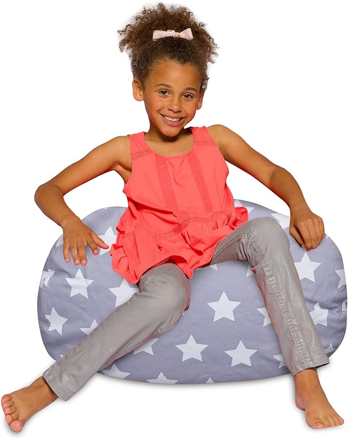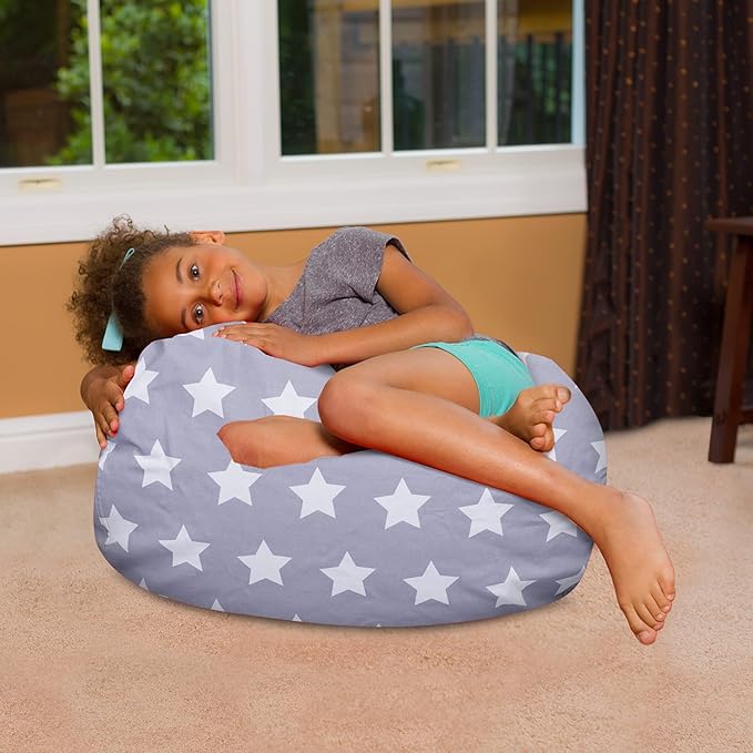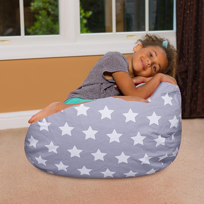 Posh Creations Bean Bag Chair for Kids, Teens, and Adults Includes Removable and Machine Washable Cover, Canvas White Stars on Gray, 27in - Medium