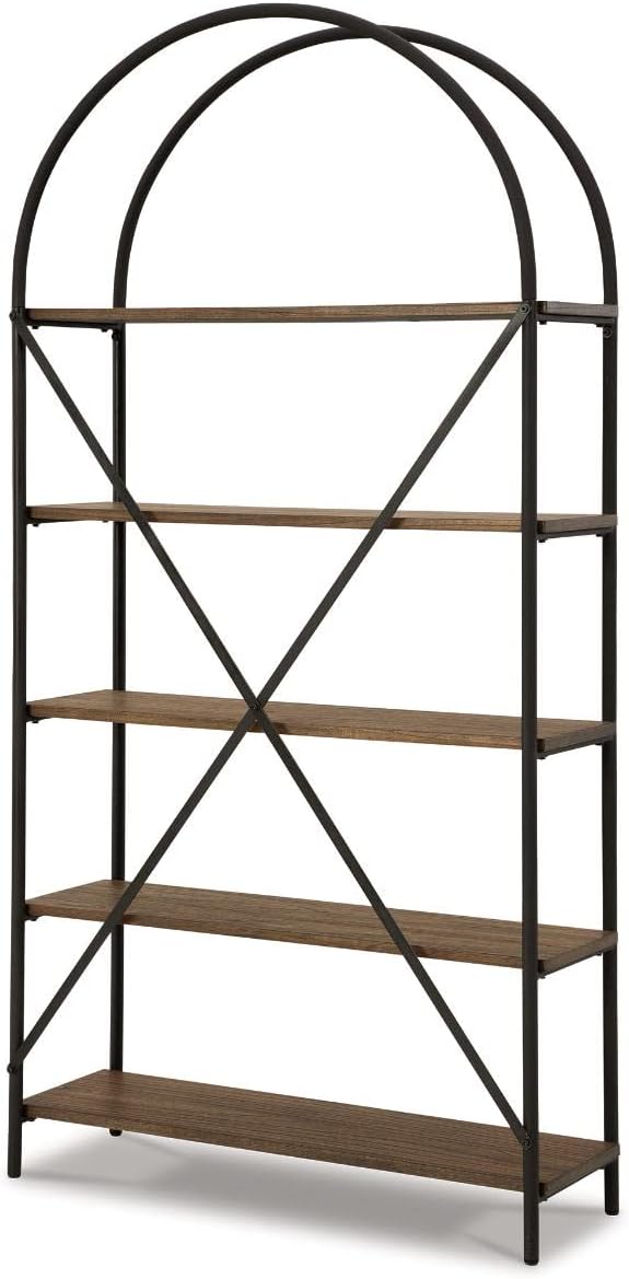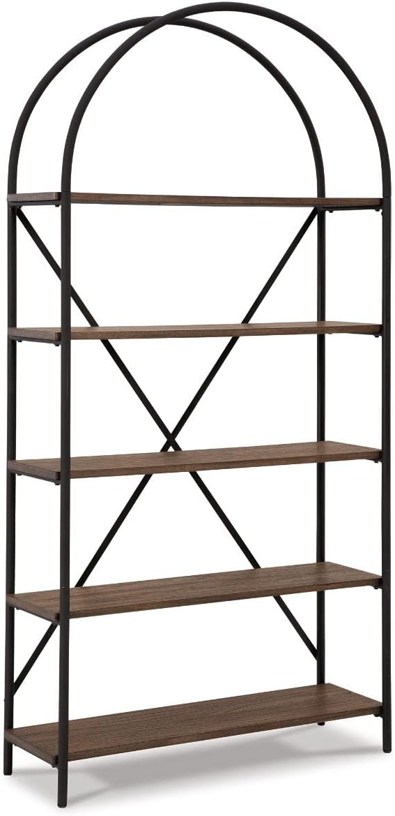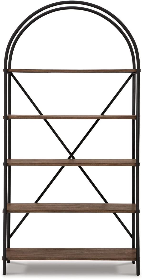 Signature Design by Ashley Galtbury Mixed Media Modern 5 Shelf Bookcase, Brown & Black