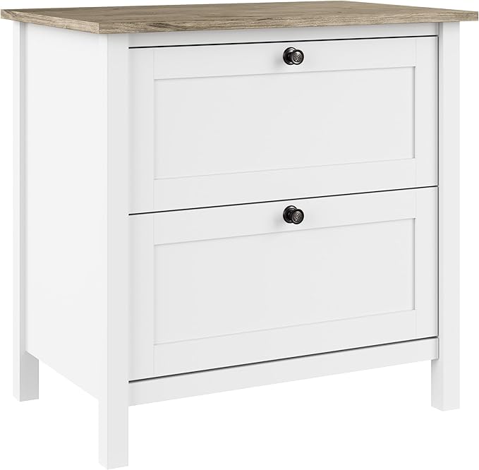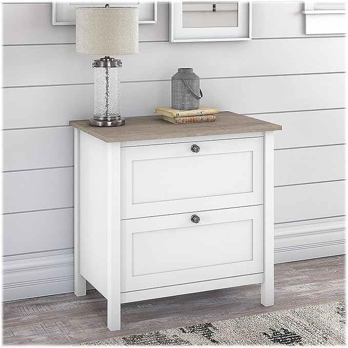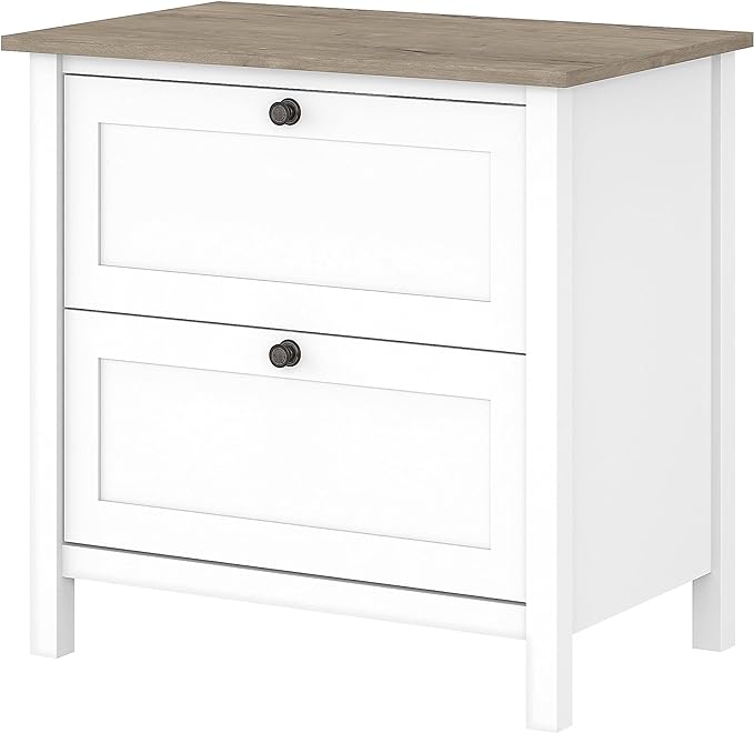 Bush Furniture Mayfield 2 Drawer Lateral File Cabinet in Pure White and Shiplap Gray