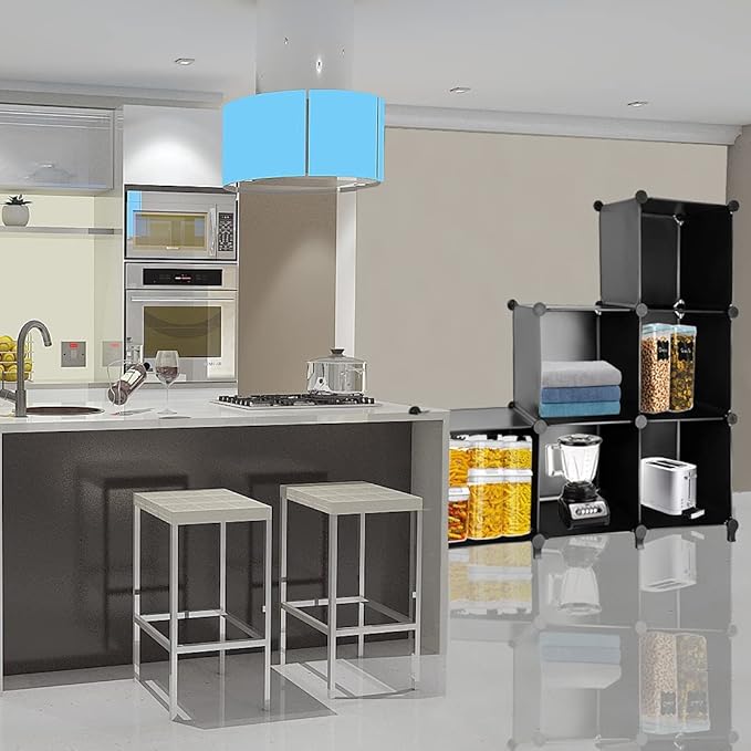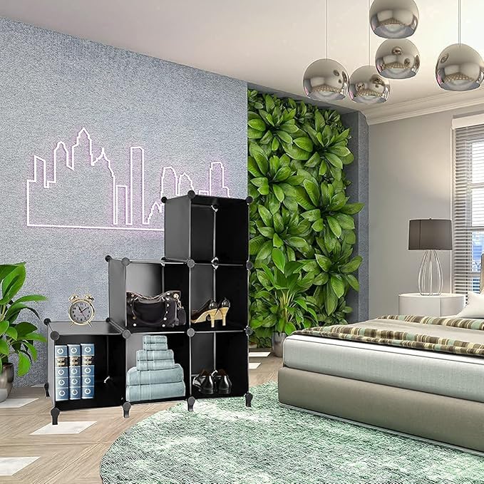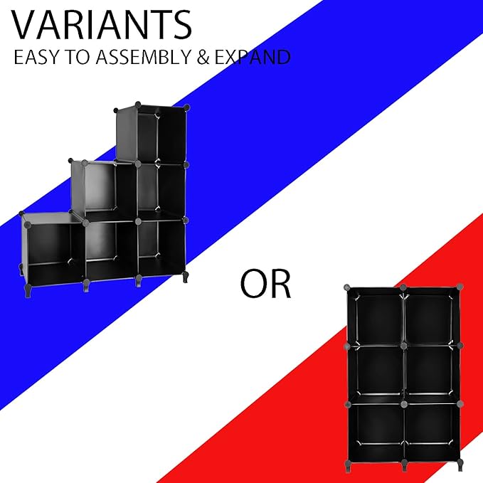 Gold Armour Cube Storage 6-Cube Bookshelf Closet Organizer Storage Shelves Shelf Cubes Organizer Plastic Square Bookcase DIY Closet Cabinet Organizer Shelving for Home Office Bedroom (Black)