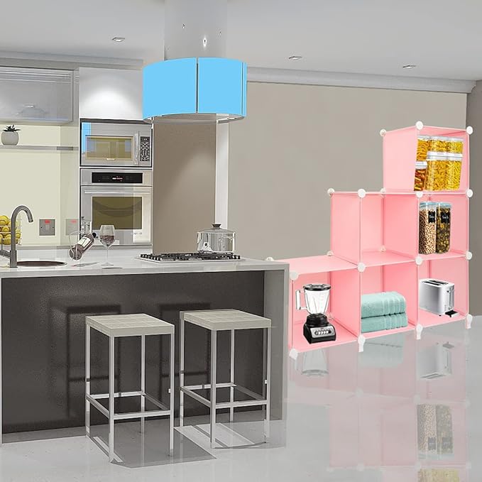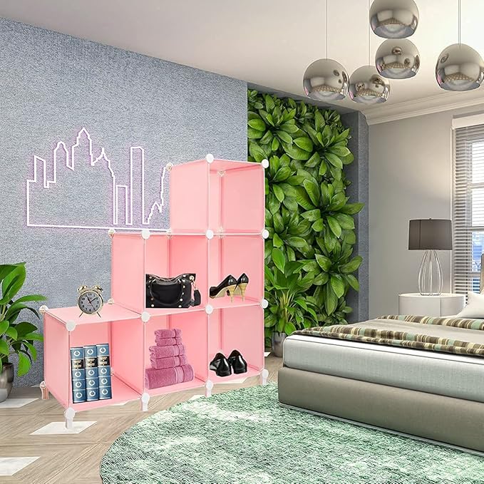 Gold Armour Cube Storage 6-Cube Bookshelf Closet Organizer Storage Shelves Shelf Cubes Organizer Plastic Square Book Shelf Bookcase DIY Closet Cabinet Organizer Shelving for Home Office Bedroom (Pink)