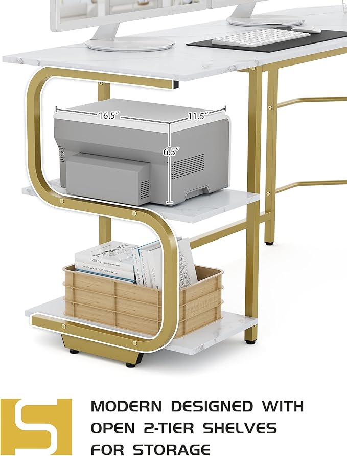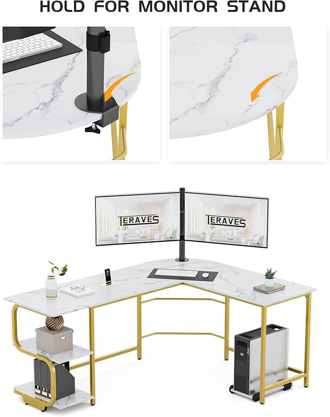 Teraves Reversible L Shaped Desk with Large Surface, 69 Inch Sturdy Corner Desk with Storage Shelves, Premium Office Computer Desk Workstation for Home Office Gaming