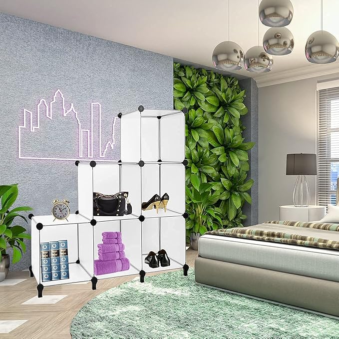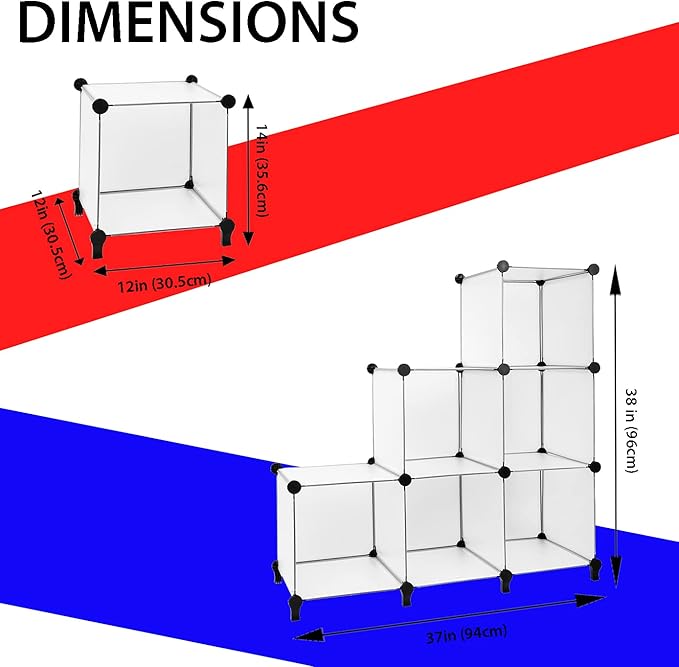 Gold Armour Cube Storage 6-Cube Bookshelf Closet Organizer Storage Shelf Cubes Organizer Plastic Square Book Shelves Bookcase DIY Closet Cabinet Shelving for Home Office Bedroom (White)