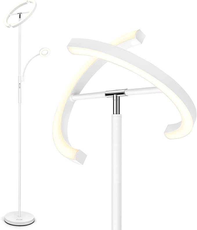 FIMEI Split Floor Lamp with Reading Light, Modern Bright LED Rotatable Standing Lamp with Stepless Dimming and 3000K-6000K Color for Living Room Bedroom Office, Touch and Remote Control, White