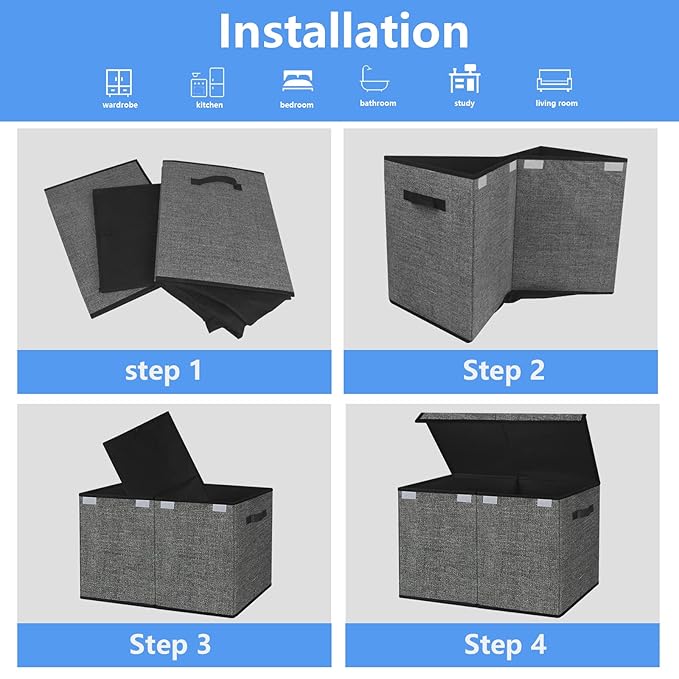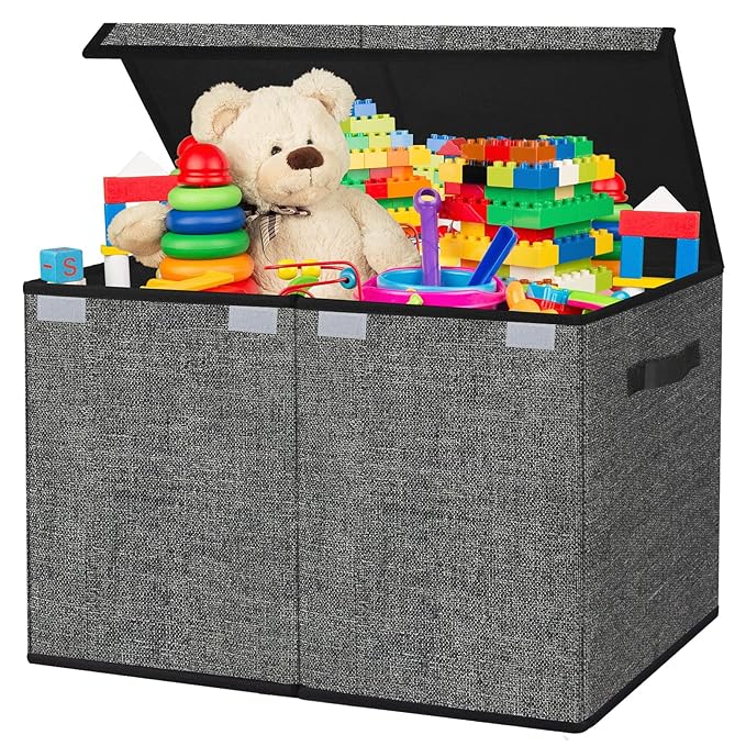 homyfort Large Toy Box Storage Chest for Kids Boys,Collapsible Toy Bin Organizer Basket with Lids for Blanket,Toys,Toddler,Nursery,Playroom (Black)