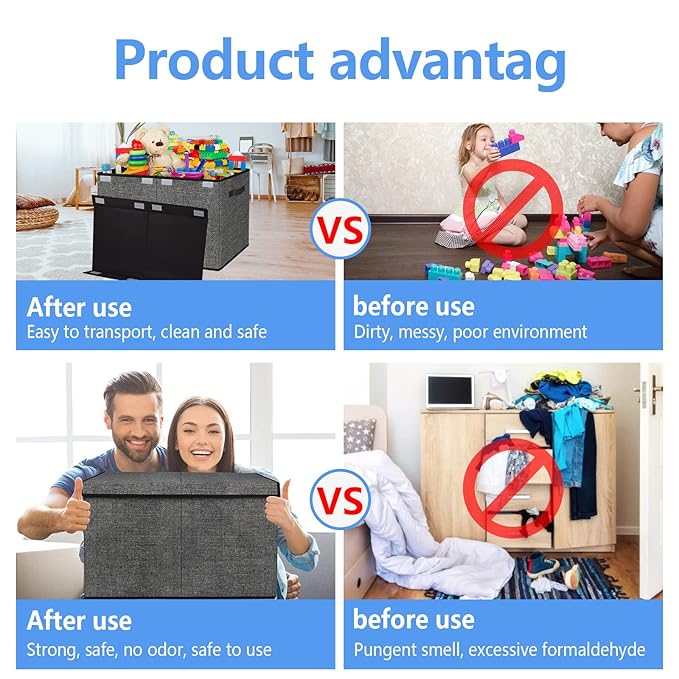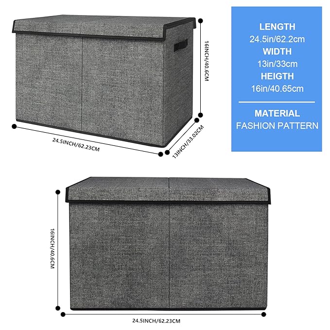 About This 【Large Toy Box】:The size of the flip-top lid kids toy box is 24.5 x 13 x 16 inches(62x33x40...