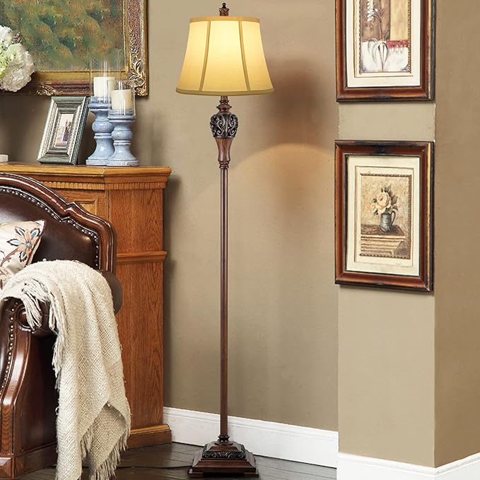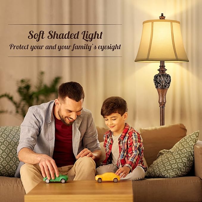Vintage Floor Lamp for Living Room Traditional Farmhouse Tall Standing Lamp Mid-century Antique Bedroom Pole Lamp with White Fabric Shade Rustic Bright Lighting Elegant Reading Lamp Retro Home Decor