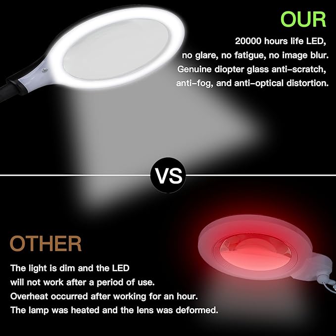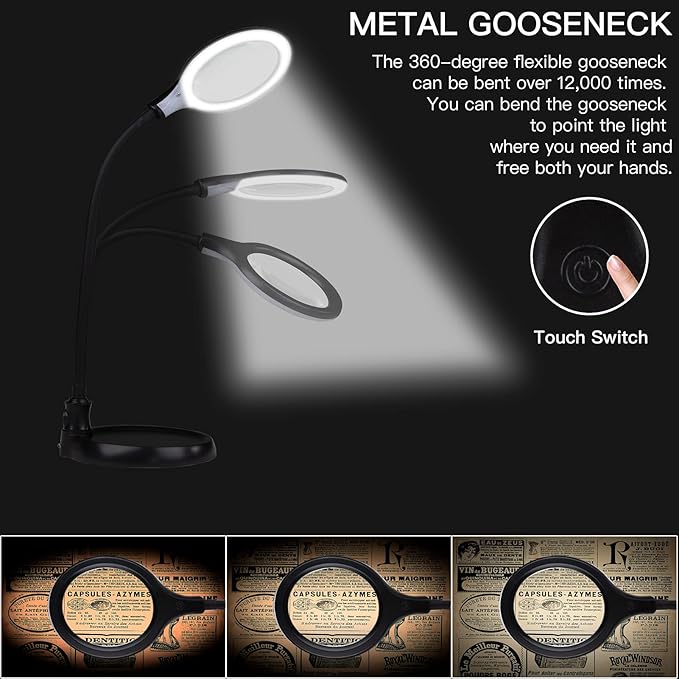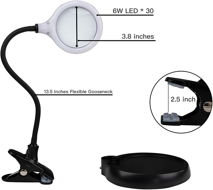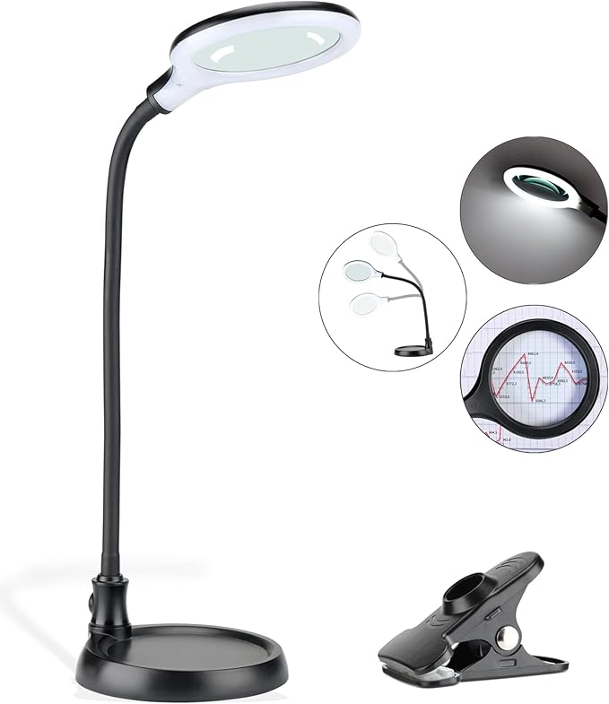 About This 2 in 1 Magnifying Work Light: Metal anti-slip clamp ensures the magnifying lamp firmly clipped onto a desk...