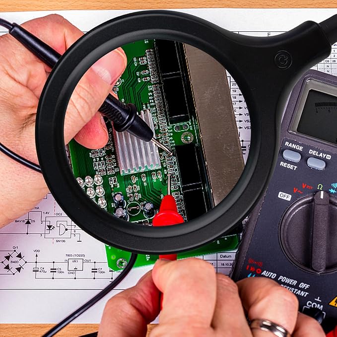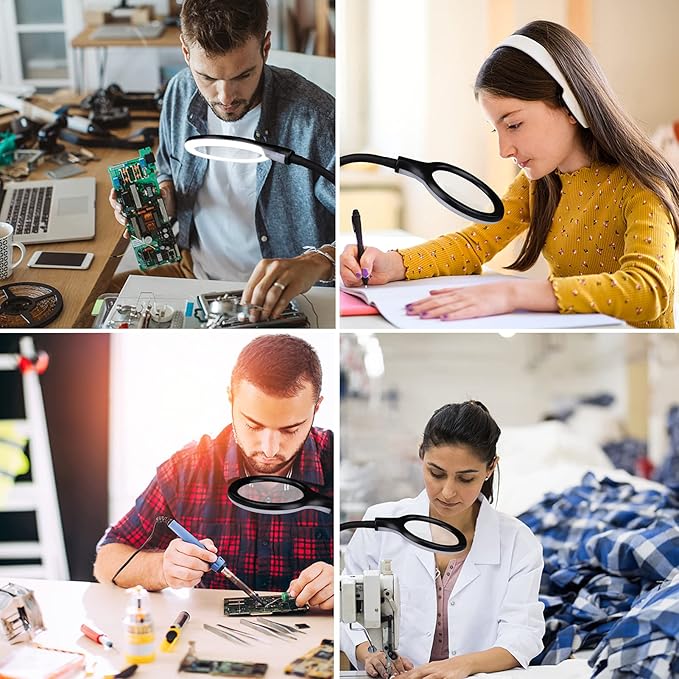 5X Magnifying Lamp, Lighted Magnifying Glass with Light and Stand Hands Free, Desk Magnifying Light, LED Magnifier Work Lamp for Reading, Crafts, Sewing, Hobbies.