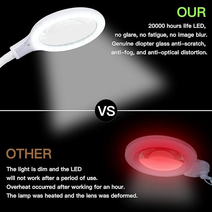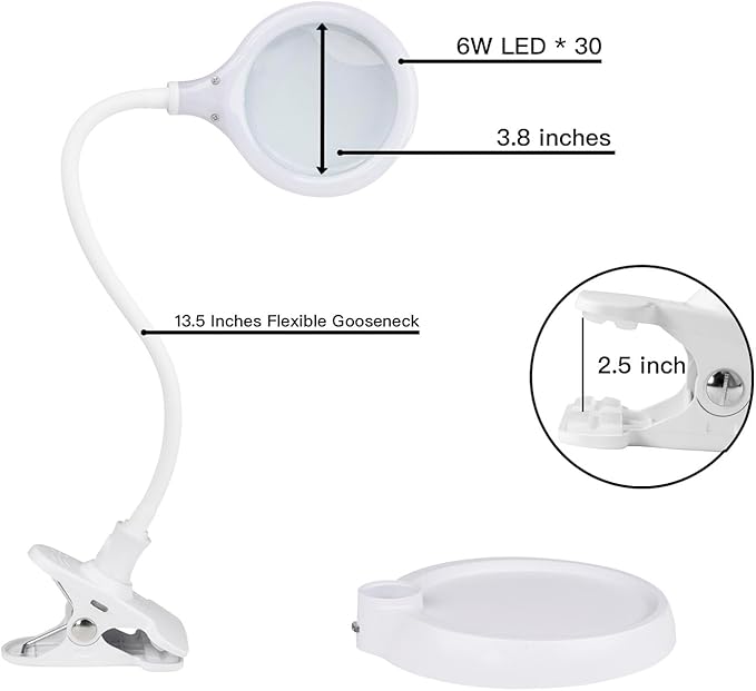 About This 2 in 1 Magnifying Work Light: Metal anti-slip clamp ensures the magnifying lamp firmly clipped onto a desk...