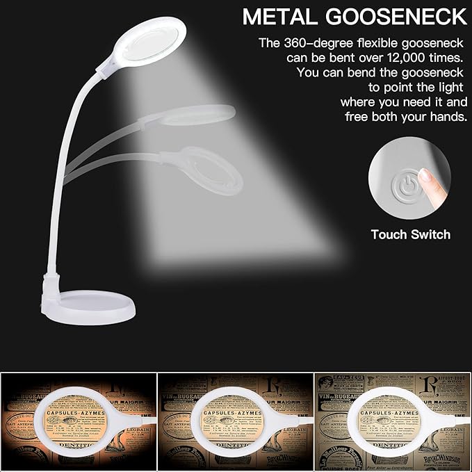 5X Magnifying Lamp,Lighted Magnifying Glass with Light and Stand Hands Free, Desk Magnifying Light, LED Magnifier Work Lamp for Reading, Crafts, Sewing, Hobbies.