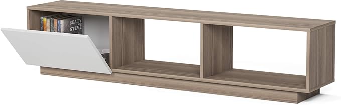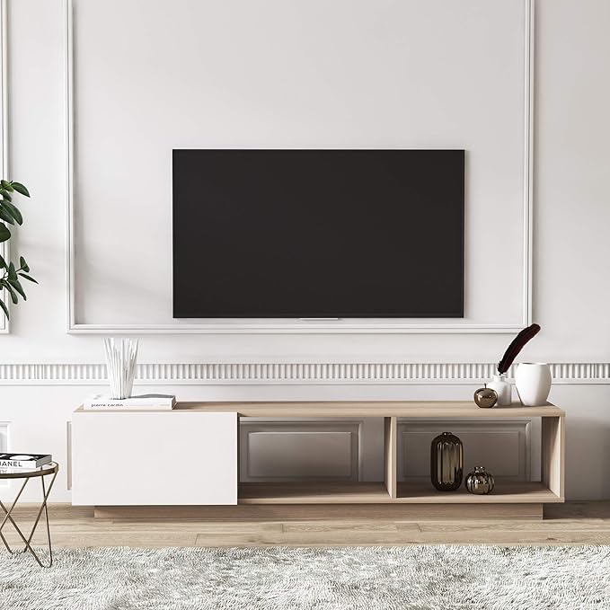 Modern TV Stand up to 75 inch Entertainment Center with Storage Mid-Century Smart Led TV for Living Room 70" TVs End Table, Lepando, White&Cordoba
