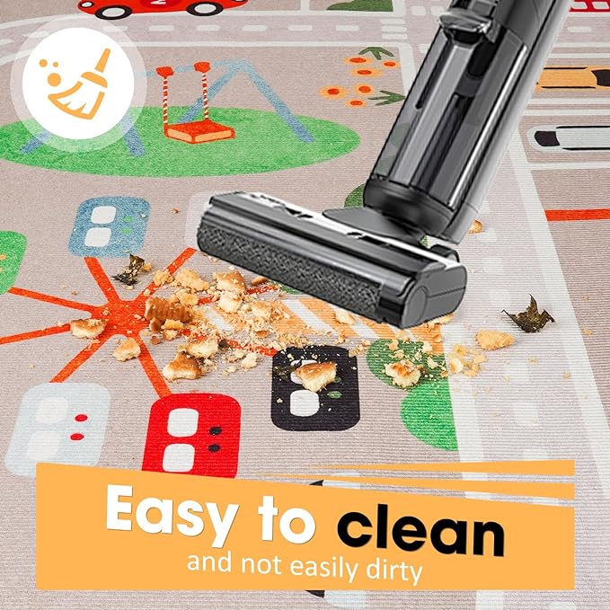 • [Thickness]: 6mm, moderate thickness, which can insulate the cold of the floor. It won't cause the toy to fall over!This City Rug includes a Hospital, a School, a Airport and so much more!