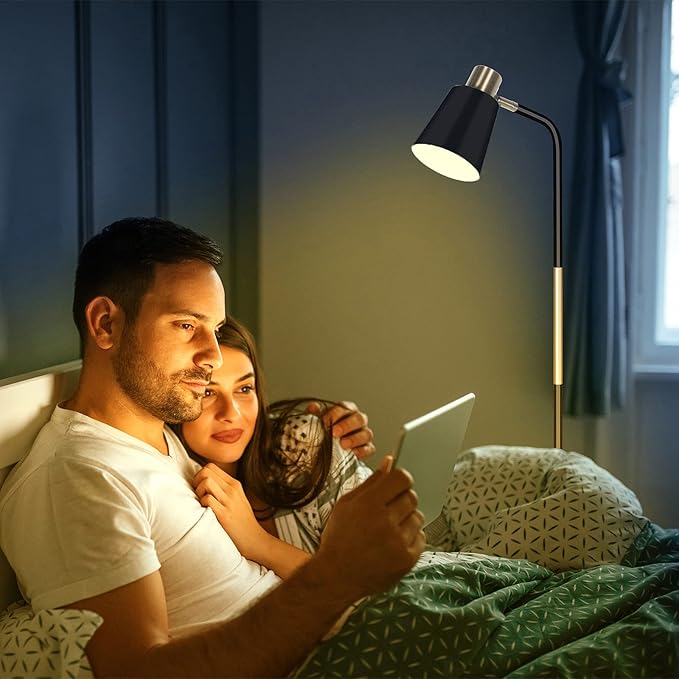 NIOSTA Floor Lamp, Industrial Floor Lamp Height Adjustable 360°Rotation Lampshade Modern Standing Lamp, Floor Lamps for Living Room, Office, Bedroom Reading, Work etc(Black)
