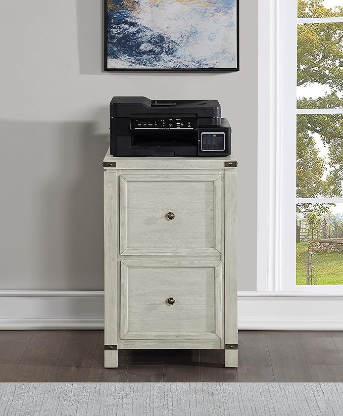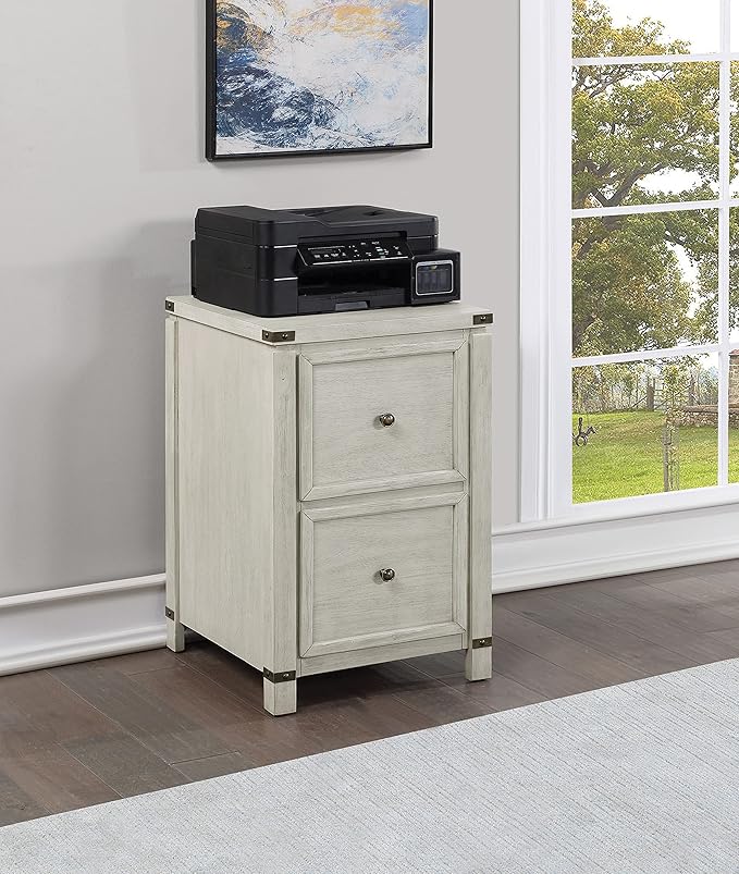 OSP Home Furnishings Designs Baton Rouge 2 Drawer File Cabinet with Rustic Design and Metal Accents, Champagne Oak
