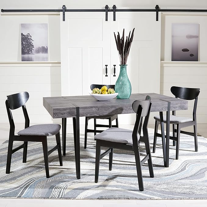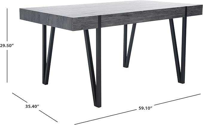 SAFAVIEH Home Collection Alyssa Mid-Century Rustic Industrial Black Oak Dining Room Table DTB7000B, 0
