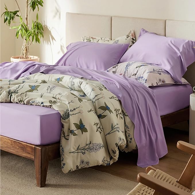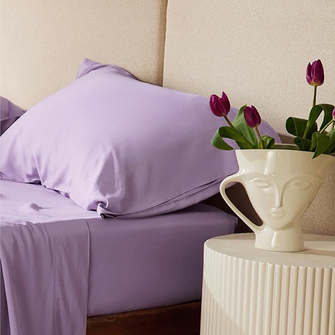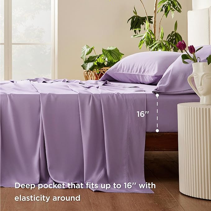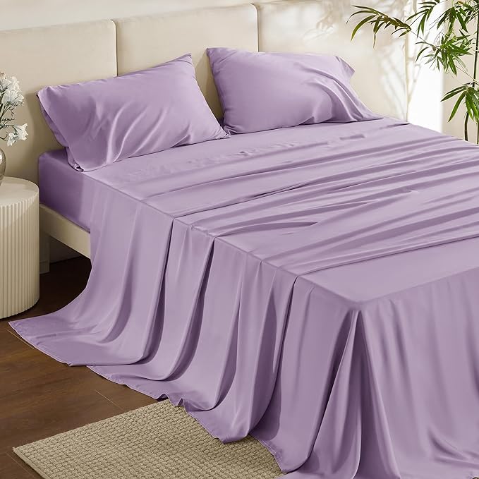 Bedsure Full Size Sheets, Cooling Sheets Full, Rayon Derived from Bamboo, Deep Pocket Up to 16", Breathable & Soft Bed Sheets, Hotel Luxury Silky Bedding Sheets & Pillowcases, Lilac