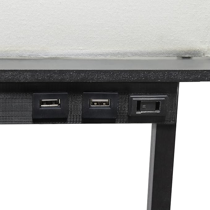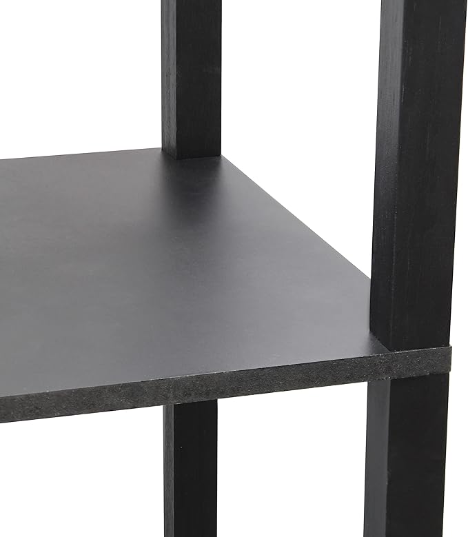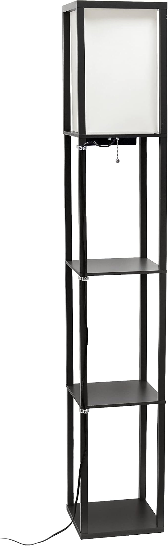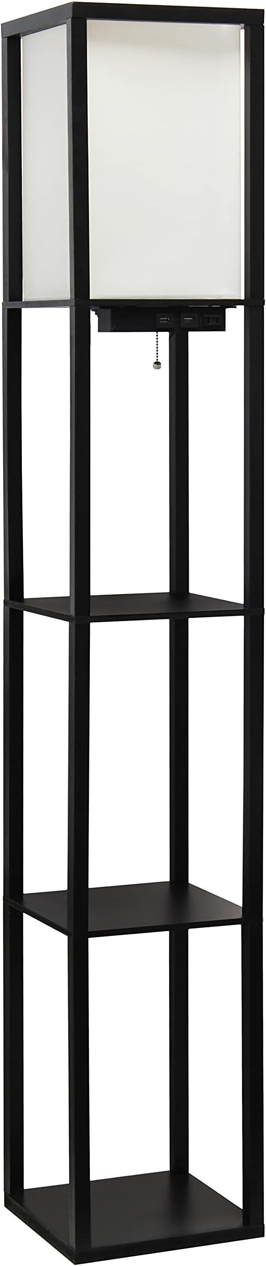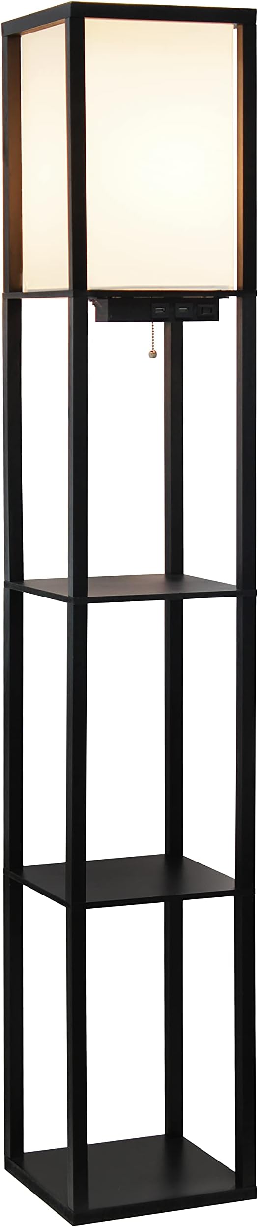 Simple Designs LF1037-BLK Floor Lamp Etagere Organizer Storage Shelf with 2 USB Charging Ports, 1 Charging Outlet and Linen Shade, Black