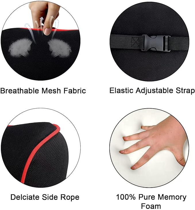 2 Pack Car Neck Pillow, Softness Car Headrest Pillow for Driving with Adjustable Strap, 100% Memory Foam and Breathable Removable Cover, Comfortable Ergonomic Design (Red Side Rope)