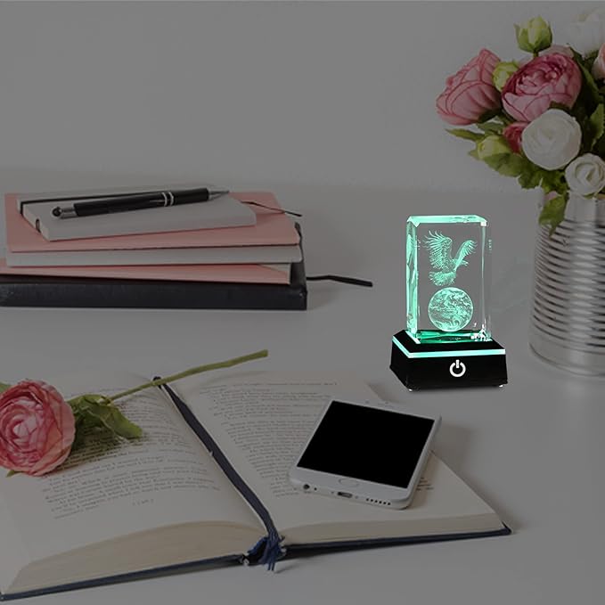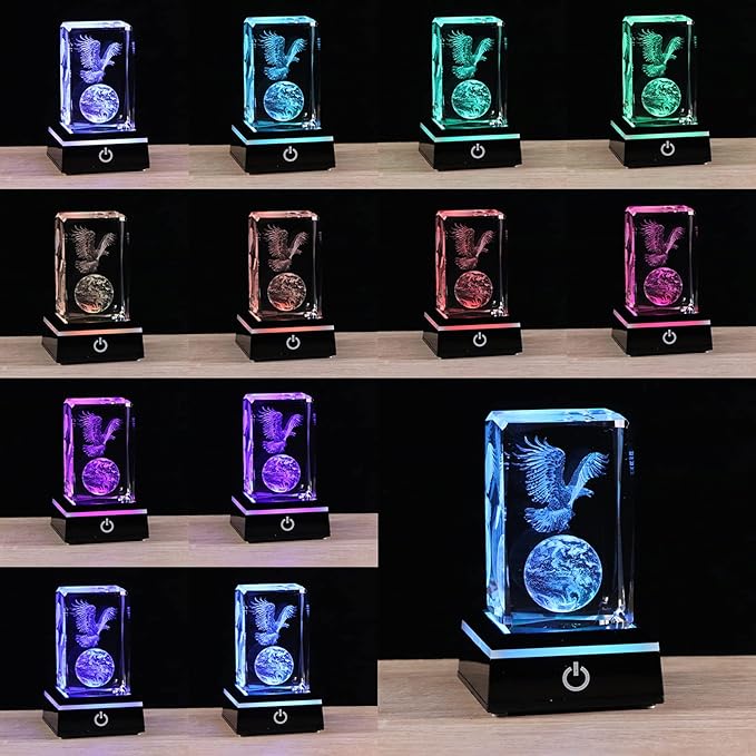 About This 3d Laser Engraving: Crystal Glass Eagle Gifts figurines Decor Size: 2"x2"x3.14". Made of K9 Crystal, Interior images are...