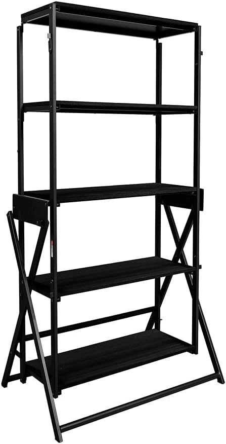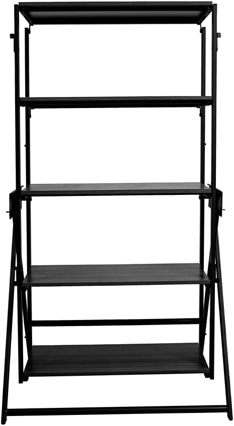 About This 50% Powder Coated Iron,50% Mdf 2-IN-1 SHELF TO TABLE: 5-tier storage shelf magically converts into a long multi-purpose...