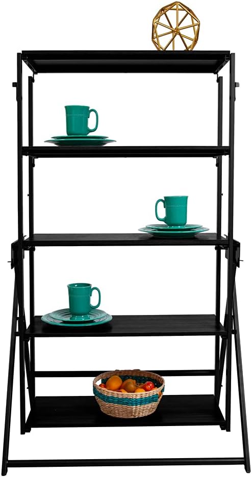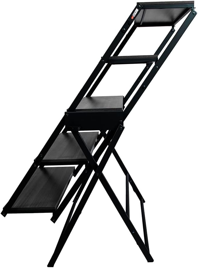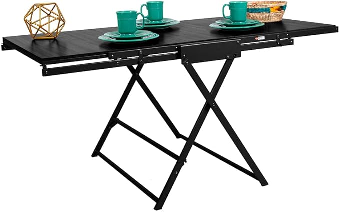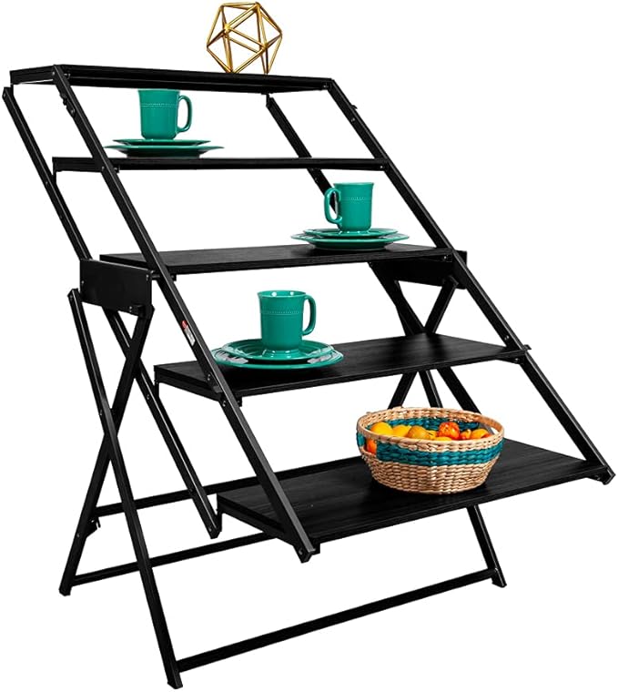 Origami Modern 2 in 1 Shelf to Table Style, Organizer Deco Rack Magically Turn to a Table/Desk in a Second, Fully Assembled, Patent Pending, Black(STT-BLKBLK)
