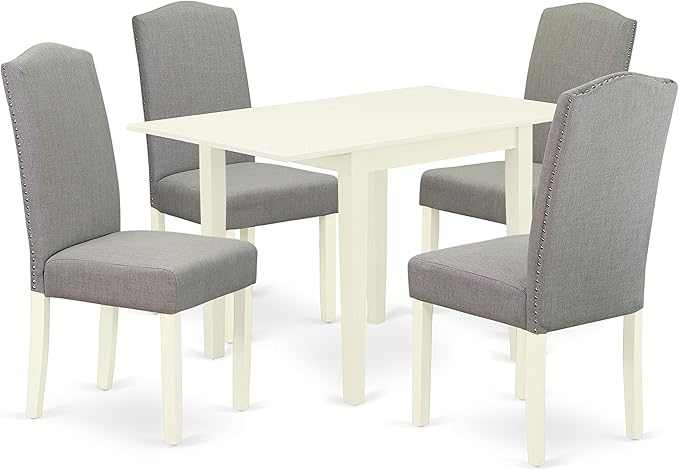 East West Furniture 1NDEN5-LWH-06 5 Piece Dining Set for 4 Includes a Rectangle Kitchen Table with Dropleaf and 4 Dark Shitake Linen Fabric Upholstered Chairs, 30x48 Inch