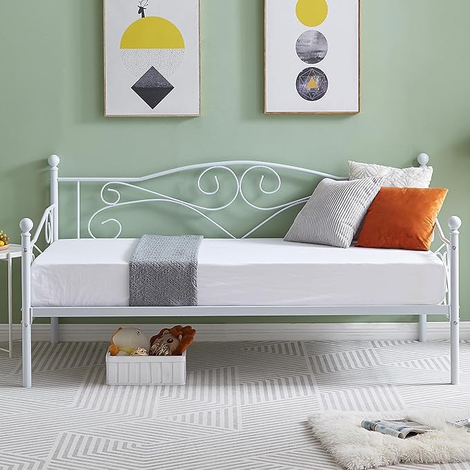 VECELO Premium Daybed Metal Bed Frame Twin Size Steel Slat Support/Strong Legs Headboard/Mattress Foundation, Multi-Functional Furniture (Classic Bed)